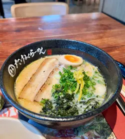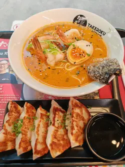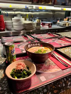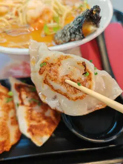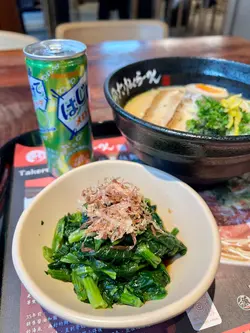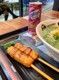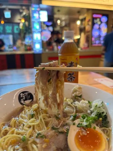 中环街巿里美食种类多,我和朋友看见一间日本拉面店<竹麓拉面>。开放式厨房,看见厨师用心制作拉面和准备配料。餐厅主要提供5款拉面,价钱由$88至$128,配料可追加。小品/小食也有7款,可选菜和肉,价钱由$18至$48。饮品类可选樽装$16和罐装$12。我们便决定在这间拉面店吃晚餐,点了两个拉面餐,毎个餐加配小食和饮品。分别是👉1. 和牛肉盐风拉面、黑豚肉饺子和樽装麦茶👉2. 海老味噌拉面、炸吉列虾和樽装麦茶。👉和牛肉盐风拉面、黑豚肉饺子和樽装麦茶汤底浓郁,充满著和牛、香葱、炸蒜味道。半只流心蛋、四块和牛;拉面粗幼和软硬适中,带点嚼口。黑豚肉饺子,共有5件,外皮煎得香脆,内里黑豚肉肉质滑溜,且带有肉汁,非常美味。👉海老味噌拉面、炸吉列虾和樽装麦茶橙色汤底,有著鲜虾和味噌味道,汤底较浓稠。半只流心蛋、三件弹牙鲜虾和一块香脆炸鱼皮。炸吉列虾,共有三件,炸浆薄,香脆可口,蘸上美乃滋酱和柠檬汁很好吃。樽装麦茶~众多饮品中选择了麦茶,皆因麦茶有助消化又利尿消肿,吃完拉面喝一樽麦茶,的确很不错选择。…Read More