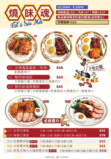 🎀大埔。新鲜出炉人气烧味茶餐厅💖🎀🪄店名* #竺扶大班烧味🔮地址* 大埔安泰路1号大埔广场地61-62号舖 🔮🗾分店地区🗾 湾仔,大埔💰价钱$85 (1人)➖➖➖➖➖➖➖➖➖➖➖➖➖想睇更多同区推介👉地区搜寻🔍🗾#pickyme_大埔剩系食呢一类👉食物类型搜寻🔍🍜#pickyme_港式➖➖➖➖➖➖➖➖➖➖➖➖➖🎵餐厅环境🎵竺扶大班烧味2021年进驻大埔,以怀旧港式磁砖、霓虹灯饰打造地道氛围,座位宽敞舒适更添人情味~门口水吧旁还设有半开放式烧味斩料区,挂满油亮烧鹅叉烧,香气四溢;墙面 陈列多个美食奖杯,见证实力。开业即成街坊饭堂,平日午市亦人龙不绝,旅客朝圣、在地捧场,日夜热闹!🍽️食物质素🍽️餐厅以烧味与茶记精髓完美融合  烧味每日太空炉新鲜烧制,严选食材配秘方工艺:古井烧鹅皮脆肉嫩带陈皮香;冰烧凤凰鸡焦香肉厚搭独门果香酱;金牌叉烧蜜汁渗透靓梅头。  另设港式常餐镬气十足(沙嗲牛/秘制猪扒公仔面);奶茶以荷兰「黑白奶」冲出香滑灵魂。  餐厅由早餐小菜到烧味,「由朝到晚都有好嘢食」,以热诚复刻地道港味!👀评分💖💖💖💖💖🪄烧鹅叉烧双拼饭$60平时食咁多好嘢,间唔中食吓港式嘅烧味饭都唔错 呢一间果然系受到好多街坊欢迎 平日入到去都已经坐爆场 叫咗佢哋最出名嘅烧鹅同叉烧 烧鹅嘅外皮烧得超香脆 肥瘦均匀 唔会食到成口油腍腍 但系又够香 而叉烧肥而不腻 好软熟 同平时食开嘅平价叉烧完全唔一样 但系呢个价钱真系超抵食!饭量超级多,一定够晒饱👀评分💖💖💖💖💖🪄上汤浸菜心$18俾佢嘅份量吓亲 因为估唔到呢个价钱系一大碗,而且菜心好脆嫩青绿👍👀评分💖💖💖💖💖🪄可乐$7套餐加配价钱劲抵 饮杯可乐即刻爽晒!(5个💖为最高)✴️✴️✴️✴️✴️✴️✴️✴️✴️✴️✴️✴️✴️⚜️整体评级⚜️🎈味道评分*😋😋😋😋😋🎈环境质素*🎇🎇🎇🎇🎇🎈抵食程度*💰💰💰💰💰🎈服务态度*💌💌💌💌💌#大埔冰室 #大埔茶餐厅 #沙嗲牛面 #烧味 #黯然销魂饭 #古井烧鹅 #食神 #周星驰…查看更多