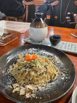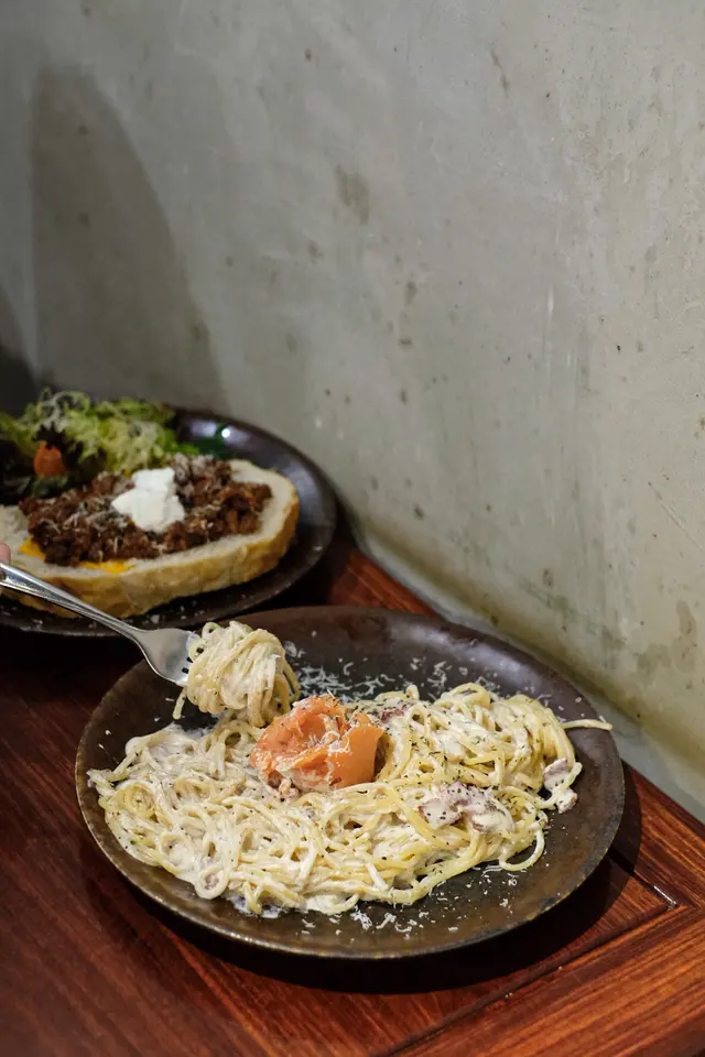偷得浮生半日闲,放半昼帮自己叉下电。笑林寺系之前去探索湾仔嘅时候,系open rice 了解下呢边有咩好食嘅时候收藏的餐厅。今日就啱啱好可以一试佢龙凤!两个人的午餐点了,两个意粉,一个包类,一个甜点及两杯咖啡。两个意粉都好出色,我个人口味第一名系:铿鱼追蟹剑😆,入口味道好丰富,奶油的香气充满口腔,浓郁嘅奶香过后系铿鱼片的香烤味,咬到一梳梳的蟹肉及卜卜脆的蟹子,爆发海洋咸香爽甜的味道,加上卜卜脆的咬口真的好惊喜。同巿面和风洋食果种白奶油蟹肉/软壳蟹意面果种油腻感觉唔一样。我谂好大程度系因为厨师加左青瓜丝适度调整左整个菜品的清甜感觉,顺带带出其他香料的味道,真系好好食,意粉够Al dente.第二个意粉:赤炼神掌(up)😆呢个都好好食,睇想唔好以为系窝蛋牛肉面,佢地嘅肉酱绝对系升级版,一入口首先系香草的香气,有肉酱基本的咸及酸味,最后仲有一种甜味系舌底出现番。如果唔系前面个铿鱼追蟹剑呢个会系今日第一。好食,明白点解咁多人慕名而去。一间餐厅兼备有趣的装潢加上实力菜品难怪咁多赞,真系做得好好。我觉得我今日有偷得半日闲,食笑林寺呢个选择真系拣得好好,要称赞下自己。今天也过得很好,满足😌。…查看更多