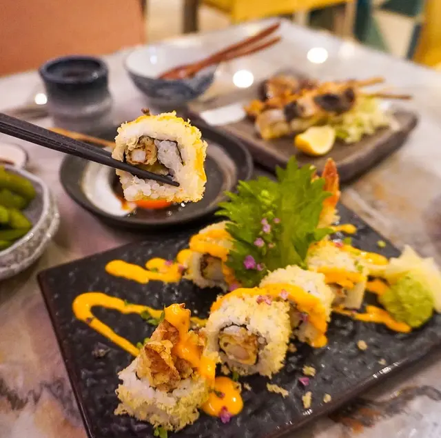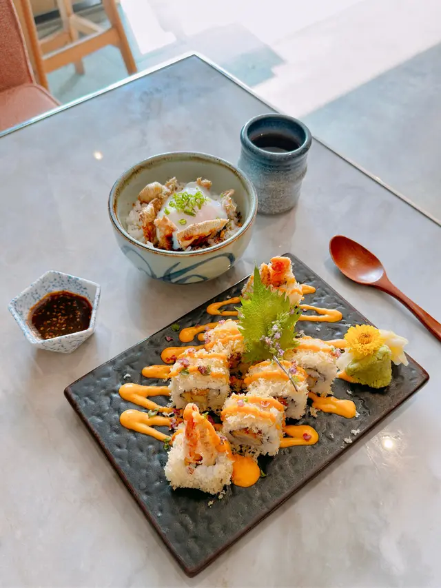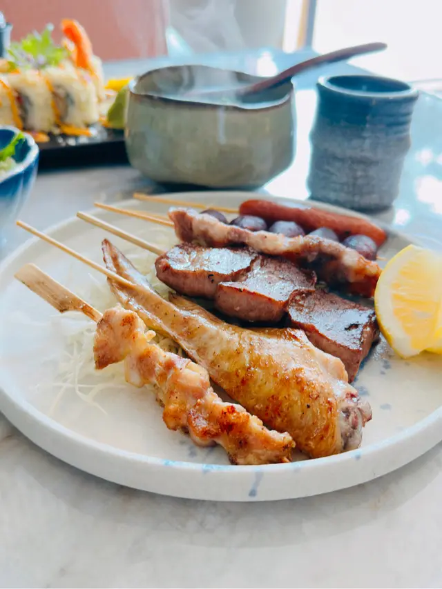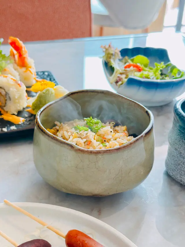 難得入淺水灣🏖️一於搵間環境好啲嘅「笑酤和味炭燒」食Lunch🍽️.師傅發辦備長炭串燒拼盤(6款)配迷你和牛炒飯🍢有雞翼🍗雞軟骨🦴牛舌👅豚腩🐖豚肉腸🍖迷你番薯🍠厚切牛舌爽口Juicy😋豚腩肥瘦各半,以鹽吊出肉香🧂加上檸檬汁更佳🍋迷你和牛炒飯夠獲氣🔥略嫌和牛粒較少同細粒🥺極上日本溫泉蛋飯拌炭燒雞皮配招牌SHOKU卷🍙脆卜卜嘅雞皮連同溫泉蛋秘製醬汁撈飯食🐓🍳🍚好好味🤤SHOKU卷包住軟殼蟹同天婦羅炸蝦🦀🍤炸得非常酥脆😆加上軟綿壽司同千島醬😗幾開胃.中拖羅壽司🍣恰到好處嘅魚油脂,十分甘香😛.沙律(2客)🥗.味噌湯🥣.雪糕(2客)🍨.凍咖啡🥤.熱咖啡☕️…查看更多