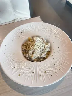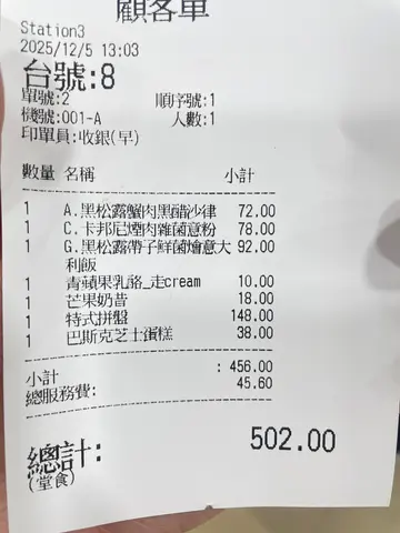 这间餐厅位于金鸡广场25楼之中,整层只有此餐厅,经过一条长长的走廊,就会看见餐厅企牌.内部环境设计同咖啡厅相似,地方非常宽敞.基本座位都是梳化椅,可以坐得很舒适.我们是午餐时间去吃的,和同事两人各叫了一个套餐,再加了小食和沙津.黑松露蟹肉黑醋沙律奢华鲜甜!蟹肉鲜嫩滑顺配搭黑松露提鲜,香气浓郁扑鼻,黑醋酸涩微甜平衡油腻,生菜脆爽清新,整体不腻口像高级西式前菜,开胃一流!卡邦尼烟肉杂菌意粉,卡邦尼汁超浓郁!烟肉香咸,带猪油香气,搭配炒香杂菌的鲜甜,带微咸芝士香和微辣黑胡椒,整体口感丰富层次感强!黑松露带子鲜菌烩意大利饭极致奢华!黑松露香气浓郁扑鼻,带子鲜甜柔嫩,杂菌味好浓郁,烩饭米粒弹牙吸满高汤和松露味,口感滑顺带自然甜味,像高级西餐厅招牌炖饭,一口让人难忘的高雅享受。特式拼盘多样香脆开胃超满足!蜜糖鸡翼外脆内嫩带甜蜜糖香,肉汁丰盈微咸;炸鱿鱼Q弹鲜甜,裹薄脆皮无腥味;洋葱圈金黄酥脆,内里软甜带洋葱香;炸芝士条拉丝热辣,芝士浓郁咸香;炸鱼柳条金黄松脆,鱼肉滑顺鲜嫩。整体层次丰富像酒吧小食天堂,脆口不油腻、甜咸平衡。青苹果乳酪饮品口感酸酸甜甜超清新!带淡淡青苹果果香,乳酪味自然浓郁,酸甜平衡好开胃,口感幼滑顺口。芒果奶昔味道香浓顺滑超好喝!浓郁芒果果香搭配乳酪的微酸滑顺,甜度自然不腻,口感细腻宛如冰沙!#Station 3 Cafe#第三站#金鸡广场#旺角美食 #波鞋街 #西式 #香港探店 #香港旅游攻略 #西餐#香港旅游#hkfoodshare#hkfoodblogger#hkfoodpic#hkfoodie#美食#FOOD…查看更多