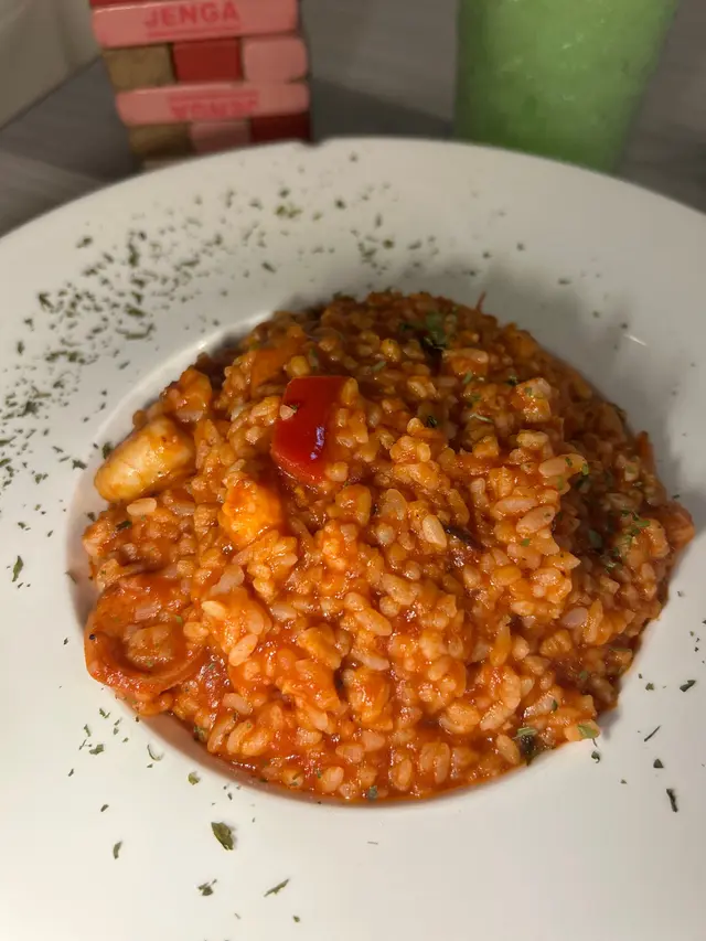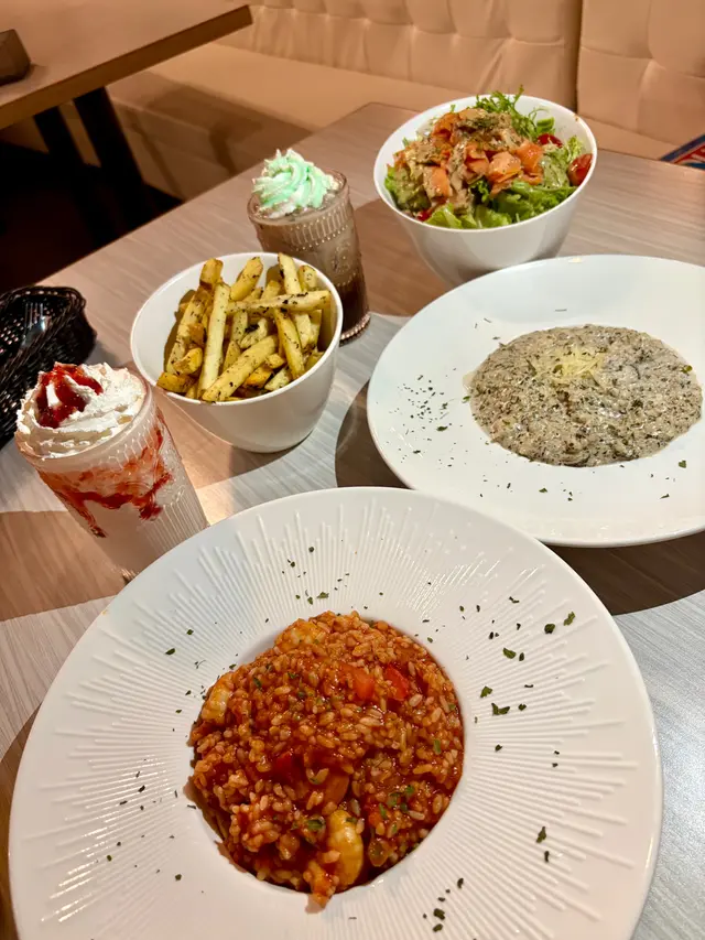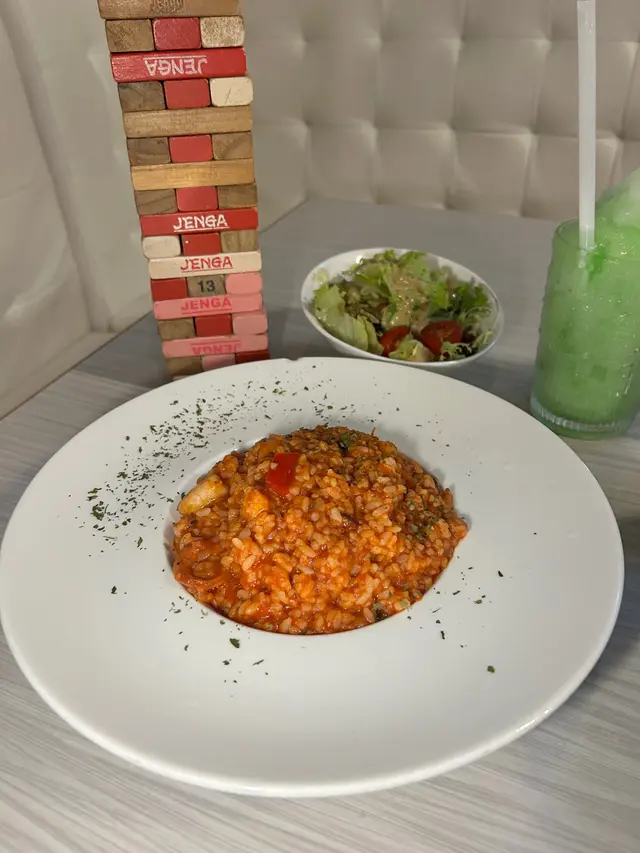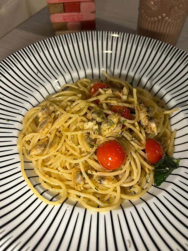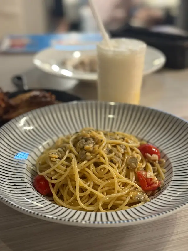 餐廳除咗環境熱鬧之外,仲有好多board game可以一路玩一路食,啱晒同朋友嚟chill吓!餐廳裝修感覺好warm。服務方面,店員都好nice同helpful,會主動介紹唔同嘅board game。最緊要係,呢度啲嘢食真係高質,唔hea㗎!香蒜白酒蜆肉意粉首先試咗香蒜白酒蜆肉意粉,蜆肉份量好多,而且好新鮮,意粉al dente,蒜香味同白酒味平衡得好好,唔會太濃太搶,好食!(必叫) 黑松露帶子鮮菌燴意大利飯跟住就係黑松露帶子鮮菌燴意大利飯,Risotto煮得啱啱好,creamy之餘又唔會太濕,帶子煎得香口,黑松露嘅香味好突出,成個配搭好夾!蜜糖雞翼叫咗蜜糖雞翼,雞翼外皮香脆,蜜糖甜甜哋,好惹味!甜品1) 開心果麻糬Tiramisu 必必必點!!開心果麻糬Tiramisu,呢個真係必試!Tiramisu口感幼滑,開心果味香濃,加上煙韌嘅麻糬,口感層次豐富!甜品2) 巴斯克芝士蛋糕巴斯克芝士蛋糕都好好味,芝士味濃郁,口感綿密,一切開仲有流心效果!水蜜桃乳酪味道清新,唔會太甜,啱晒解膩!可人兒 花茶…查看更多