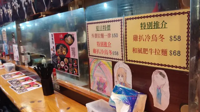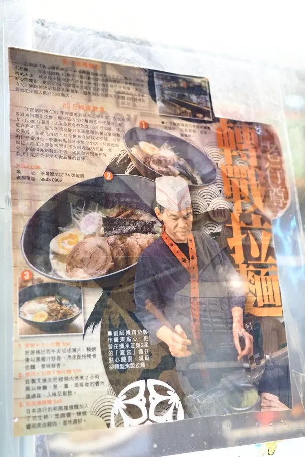 米芝蓮點心師傅的拉麵檔 糖小妹等级42015-06-30792 瀏覽 關注 前排同S先生經過荃灣鱟地坊,呢頭愈開愈多食店,咁岩見到呢個室外拉麵檔,感覺頗有風味,八卦地望一望餐牌,見佢都好似係賣港式拉麵,好似唔多吸引就無試到。剛好過幾日,見到網上話佢地既拉麵係由一位米芝蓮既廚師主理,仲話湯頭係用八十斤鮮豬骨同十多隻老雞熬製而成,仲加入大量昆布同大洋蔥,完全不含味精咁話。心諗: 原來咁西利? 所以某日放工後就決定去試。(後來先知,原來廚師個米芝蓮係精於製作點心,並非拉麵..噢..想多了).呢日天氣未算好悶熱,所以坐室外都還可以吧。不得不說店員既服務態度係值得一讚,而且很積極。室外包括幾個吧檯位、二人及四人坐位。仲貼上唔少報章雜誌報導同廚師獎狀。.餐牌有約8款拉麵和數款小食。.第四天招牌叉燒拉麵 $58見到寫住招牌,所以小妹就揀左佢。其實講真個賣相真係幾似港式拉麵,材料有叉燒數片、半隻溏心蛋、芽菜、紫菜和筍等。先呷一口湯底,味道較薄弱,只嚐到淡淡的豬骨味;半隻溏心蛋既味道都唔錯;仲有幾塊半肥瘦既日式叉燒,味道帶有陣陣酒香,呢個算係幾好味。.和風擔擔麵 $48S先生既和風擔擔麵,帶點辛辣,味道就比較濃郁惹味。.九州棒棒雞 $38其實係去左骨既雞肉,食落好似手撕雞,配上蔥花和日式麻醬,味道唔差,不過唔好睇佢好大碟咁,其實底下墊左唔少菜,所以份量唔算多。.日式黑椒牛舌心 $48用黑椒炒香既牛舌,咬落惹味爽口,就係油感較重。好彩價錢唔算貴,唔計拉麵,兩款小食既味道其實都唔差,所以都未至於要比喊面,但如果以成舊水一碗既拉麵期望去同佢比較,一定會失望! …查看更多+ 10以上食評乃用戶個人意見 , 並不代表OpenRice之觀點。2分享米芝蓮點心師傅的拉麵檔 第四天拉麵 https://s.openrice.com/QrLT0rvib00檢舉 張貼 評分3味道3環境3服務3衛生3抵食用餐途徑堂食人均消費$100 (晚餐)