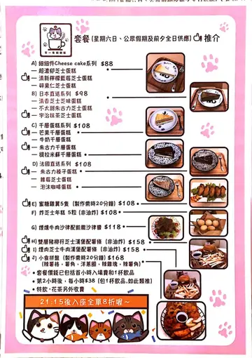 相约朋友去猫Café饮下野倾下计最紧要系可以同猫仔近距离接触🐱朋友预先做好research依间café专门收留无家可归既流浪猫同埋想更多人关注流浪猫见到佢地既poster有句“你的每次来临 流浪猫便会有一餐温饱”原来店舖每月开支扣除营运成本之后会将部份收益捐助比”深水埗喵喵喵”等佢地帮助更多流浪猫店入面仲有领养板会张贴一d等人领养既猫既一d资讯 帮佢地寻找温暖既家🏠依度收费系每一个小时计入场费第1小时$68包1杯饮品🥤第2小时起$38包1杯饮品 (特饮系列 花茶 轻食另计)卫生原因 入黎之前要除鞋同埋一定要著袜如果冇袜可以即时买一对🧦店入面地上铺晒塌塌米同埋坐垫 真系好日系风同朋友第一个钟都系各自叫左件cake加杯野饮我地去当日冇提供小食 只有少量cake可以选择所以之后就只系叫多杯野饮 饮到肚都涨😆-🔸牛奶千层蛋糕🍰🔸提拉米苏千层蛋糕🍰🔸清新柠檬蓝莓芝士蛋糕🍰🔸碳焙乌龙奶茶🥤🔸Oreo脆脆朱古力🥤估唔到佢个千层蛋糕好有水准 唔会一切就跌晒食到佢既一层层 味道方面 牛奶味好都浓郁🥛提拉米苏亦唔会过甜 岩岩好👍🏼朋友个杯Oreo脆脆朱古力超大杯 饮极都未饮晒😆味道方面唔系死甜 可以接受d脆脆好有咬口 饮到最尾都唔会淡晒个度既staff好nice 会提点客人尽快食用 以免猫仔会过黎偷食-依度总共有几多只猫仔真系数唔晒🐱有d系度训觉 有d就周围撩人玩 有d就周围行但当主人返黎喂零食 就成堆都跑晒出黎睇住佢地劲为食既样 劲可爱😍😍重点一提: 千其千其唔好格硬抱猫仔同埋拖佢地因为当日见到有位男士劲粗鲁咁拖猫仔去佢身边又格硬要抱猫仔 最后staff见到都出声提醒希望每个人都可以尊重返d猫猫🙌🏼-🧸🌞C.ookingbear推介指数 👉🏼👉🏼 9️⃣🌟…查看更多