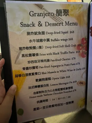今日去左元朗另一间西式餐厅,叫做简.聚。佢位置喺元朗广场附近,佢有少量室外位置,可以带埋毛孩过黎食饭。今晚未够7点佢已经满座,可见佢几受欢迎。佢夜晚有dinner set menu,有餐汤/沙律+appetizer+main course,仲包饮品,人均大约二,三百蚊。佢呢排仲做紧promotion,如去餐厅庆祝生日或周年纪念,该月可享免费法式甜品一客及免费写字服务(记住要提前预订先有)。我地今日叫左: 🔸️生蚝拼盘 (银堡垒×2 + 特级圣马田×2)($68/each, 8/10)生蚝都几新鲜。银堡垒比较鲜甜,清新口感;圣马田,入口带有浓郁既海水味,口感爽身。两只口味各有特色。 🔸️西班牙火腿田园沙律配意式黑醋配餐包 (set, 8.7/10)好大碟沙律,沙律菜好新鲜,配埋带微甜既黑醋好开胃。特别赞下个餐包,焗热左又好软熟,好香黑糖味,又有一粒粒麦好有咬口。 🔸️ 烟三文鱼蟹肉他他配凯撒沙律汁(+$78, 8.8/10)呢个几好味,好多蟹肉好有鲜味,蟹肉同烟三文鱼之间既味道同口感都好配合,推荐。 🔸️ 香煎老虎大虾冬荫公意大利面($158,8.8/10)我觉得呢个冬荫公意大利面有惊喜,首先佢𠮶两只老虎大虾超级香超级好食,意大利面既冬荫公味好特出又惹味,有少少微辣,十分好食! 🔸️ 烤加拿大猪鞍扒配蜜糖芥末籽汁($228,8.6/10)劲厚肉既加拿大猪鞍扒,中意食肉同蛋白质既朋友一定中意呢个,厚肉得黎一啲都唔肥,配埋焗蒜头一齐食更加滋味。 🍨是日生日甜品:Opera Cake (FREE, 8.2/10)食完饭仲有甜品,满足😁。仲系一个惊喜既生日celebration! 个甜品外型好靓,仲有生日歌听😁 🍹冻鲜果茶 (+$22, 8.3/10)唔错,唔会太甜,仲有好多桃肉添。 🍹洋甘菊茶 (+$18, 8.3/10) …Read More