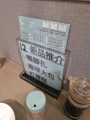 呢间茶居系新墟街市侧,确实位置系天桥底下附近,呢排做紧特价,茶位每人3蚊,孖宝38蚊,仲免收加一,算系几抵食。茶叶有三种选择1️⃣铁观音2️⃣普洱3️⃣玄米茶。孖宝餐是限于点心纸的A,B类项目选择。今次同朋友叫咗1️⃣凤爪排骨饭、2️⃣蒜香春卷、3️⃣煎虾胶酿茄子同埋4️⃣鸡扎。以两人计,份量算系啱啱好。味道方面,算系中规中矩。另外,茶就拣咗铁观音,是普通的茶。整体来讲,茶居推出既优惠令性价比提升不少。服务都OK,一坐低就有人嚟执枱。