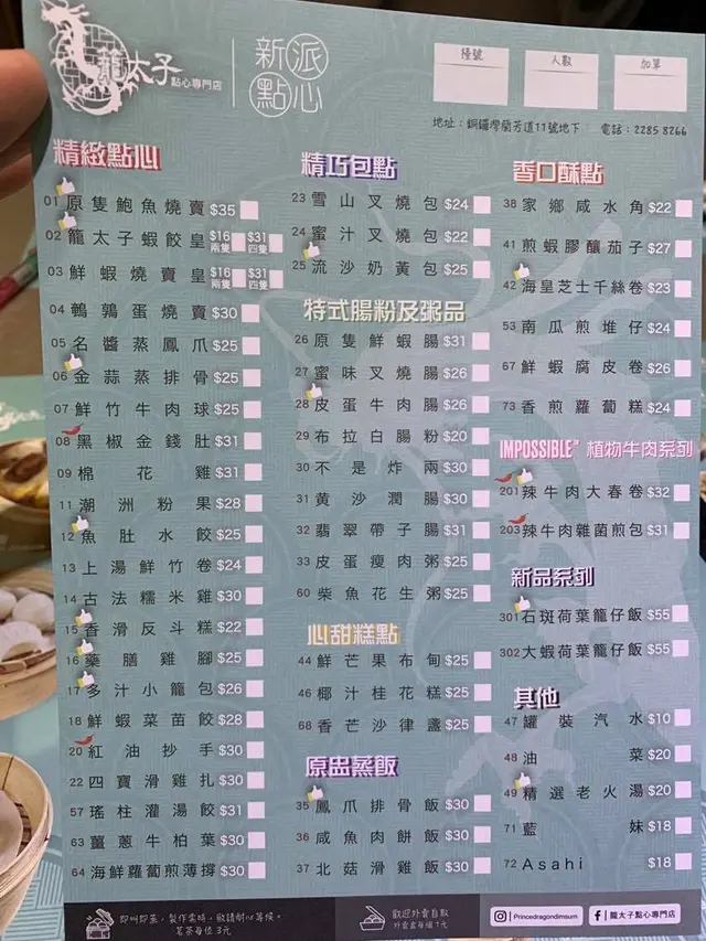 最近好想食點心,所以約咗朋友放工之後嚟呢間市區入邊都幾方便嘅點心小店度食。餐廳自稱主打新派點心,選擇唔算少,但感覺上唔係好有創意好特別嘅點心,大部份都係平時食過知道係乜嘢嚟嘅。每位茶錢只係$3 ,十分之合理。全部都係即叫即蒸。籠太子蝦餃王呢度嘅蝦餃有得揀兩粒或者四粒,唔同價錢,方便而家限最令之下一至兩個人去食嘅時候唔一定要食晒四粒,可以有多幾款選擇食其他嘢。整體來講都幾出色,鄙薄餡靚,入邊嘅鮮蝦都好彈牙。金蒜蒸排骨我自己個人好喜歡食排骨,每次去食點心有蒸排骨或者排骨飯的話都會一定點嚟食。呢個蒸排骨下面墊住排骨嘅竟然係蒜蓉烏冬!震驚了我。排骨有四至五舊,兩點係下面的蒜蓉烏冬,食落又幾出色幾好味真係有創意。多汁小籠包小籠包真係好多汁,每一個有錫紙兜裝住,夾起嘅時候唔小心因為癡住咗個兜,令到啲汁流晒出嚟。小籠包嘅皮唔會好口,入邊嘅餡都幾多,熱辣辣真係好多汁。雪山叉燒包一碟有三個,咬落包嘅口感偏遠,雙層嘅墨西哥皮都冇外面食到嘅咁脆。似係成個蒸出來。外面嘅感覺上墨西哥皮會比較脆。裏面嘅叉燒醬份量都唔少,幾好食。炸兩炸兩有幾搞鬼,網絡真係似炸兩,但係入邊似係一個炸過嘅腐皮卷夾住蝦!略嫌佢哋嘅腸粉皮有少少厚。。潤腸潤腸入邊包住嘅豬潤每一九都幾大舊,臨上表面嘅時候都唔會太咸,謝謝拎上枱嘅時候先至倒落去,真係好有以前細細個去茶樓食點心嘅情懷。煎蝦膠釀茄子呢碟可以話係最唔推介嘅點心款式,雖然我本人係超級喜歡食茄子,但係你都知道茄子要保留外面先紫色嘅話就要經過油炸。雖然蝦餃好好食,但係因為茄子炸過之後吸晒所有油分,而且份量都頗大,一疊四個同朋友分享要每人食兩舊感覺太油膩。查看更多