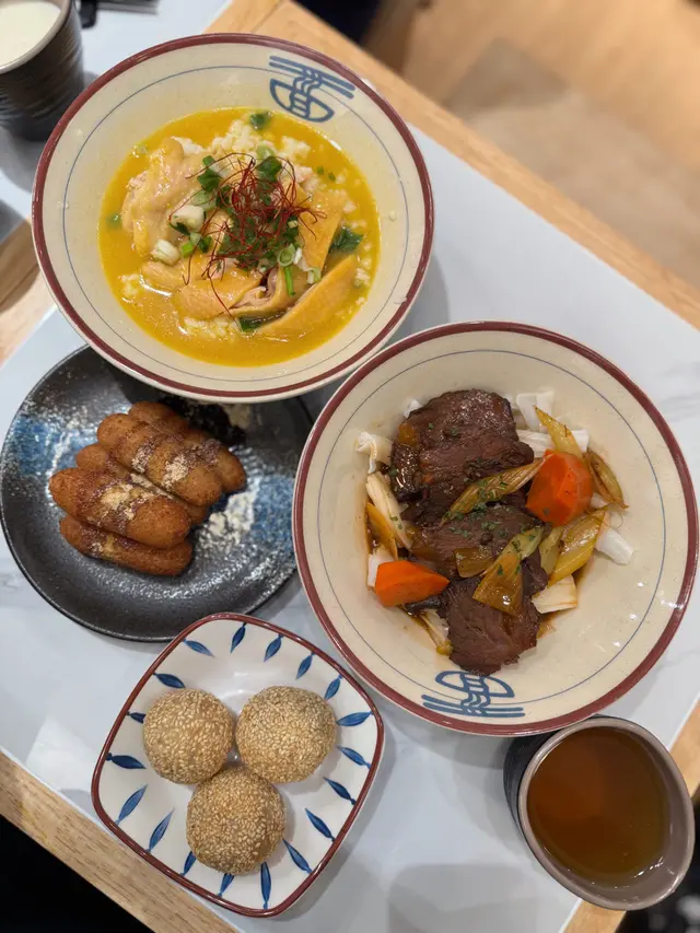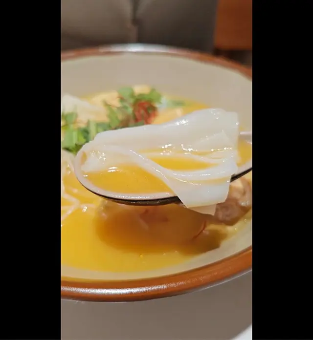 原來五月新開咗間陳村粉,但係因為喺內街所以冇發現 早兩日見到老闆派傳單 俾我見到傳單,上面寫住陳村粉 老闆同我講佢哋新開冇耐,佢哋有陳村粉食當下就決定,下次過嚟試吓 原來佢哋3:30至5:30落場 咁啱今日去到係佢哋啱啱開咗,如果唔係就要下次再食啦 有個套餐就係送飲品 跟住食陳村粉仲有兩款點心 加$8就有埋甜品老公揀咗金湯雞 陳村粉 佢個金湯原來係用雞湯同埋南瓜煮嘅,所以味道好濃郁 佢個雞湯好好飲 非常唔錯唔錯 而且佢呢度嘅陳村粉係同其他舖頭食開嗰啲陳村粉差唔多都係非常之滑, 啲計到幾好食好滑 我就食咗呢個孜然粉 炒牛肉陳村粉 本身以為會乾嘅,但係估唔到佢啲汁都幾夠 ,到最尾都係好濃郁嘅汁 可以喺四款點心入面選擇兩款 每款都係一舊 估唔到佢個炸魚餅幾好食 配上呢個泰式嘅汁醬好開胃 我麻麻哋,佢個鮑汁腐皮卷 我唔係幾鍾意佢浸鮑汁嗰陣味 但係老公就話好味 佢個炸鹹水角熱辣辣同埋好煙靭 勁好食囉,個鹹水角! 雖然係話咖喱餡,但係個咖喱味道唔出 但係都係非常之好食我加咗$8要個甜品 呢個雲石椰汁糕 味道幾唔錯,同埋睇得出落足料 但係我覺得佢唔夠彈牙 可能佢冇乜點樣落魚膠粉 但係個味道係好香濃😆😆 已經決定好,下次帶埋爸爸媽咪過嚟食 老闆攞咗個蒜蓉辣椒醬俾我哋佢話係佢哋自己煮 攞嚟撈陳村粉,非常惹味 覺得佢呢間店好有人情味 同埋我問老闆嘢佢都好熱情咁樣答我 我自己幾鍾意呢種職員會同客人有多啲互動嘅舖頭,喺我嘅詢問底下了解原來佢哋係廚藝學院畢業嘅 廚房嘅師傅係廚藝學院 嘅老師 好期待佢哋遲啲出小炒 聽聞會有炒菜或者豉椒蜆同埋生炒排骨 同埋希望佢遲啲有炒陳村粉 因為香港真係冇乜地方,食到好食嘅陳村粉 支持小店! …查看更多