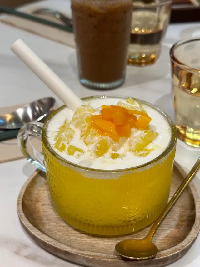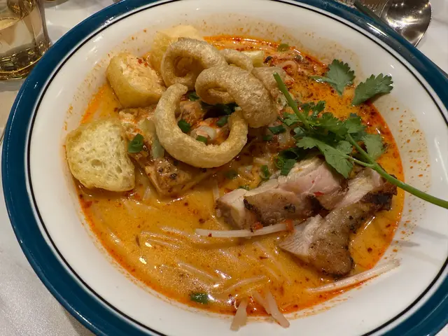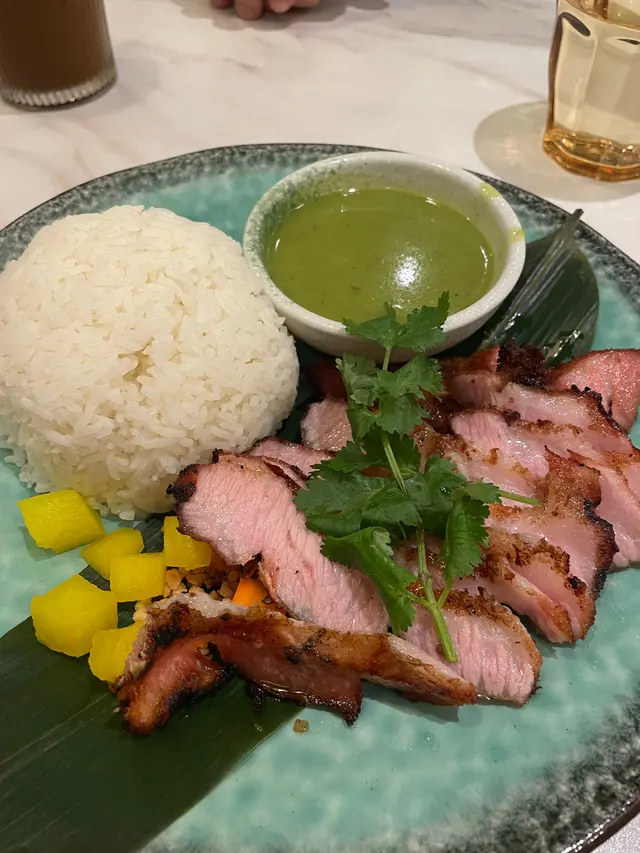 依間餐廳晏晝食過幾次,食物質素唔錯,但如果平日遲咗啲去1230後到都好大機會需要排隊,附近好多打工仔都會食,所以可以嘅話盡量早啲去。午餐係一個set,包小食主食飲品。小食之前食過間骨雞翼同芒果米子卷都唔錯,今次食生蝦就OK啦。主菜之前食過青咖喱豬頸肉飯幾好,牛肉船麵普通,今次食紅咖喱雞扒都幾好食,新鮮熱辣辣。見飲品有得加錢轉芒果椰子沙冰,俾佢吸引咗,嚟到杯嘢個樣係幾靚,但飲落真係好難飲,除咗面頭嗰幾粒裝飾完全冇真芒果成份,成杯係糖漿嘅芒果味,椰子就係喺面頭唧左少少椰奶咁。好伏千祈唔好嗌,要加成$15,我飲咗兩啖都冇飲勁嘥。其他人叫咗泰式奶茶話正路係甜左啲,冇得嗌少甜。查看更多