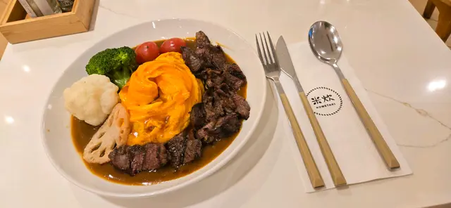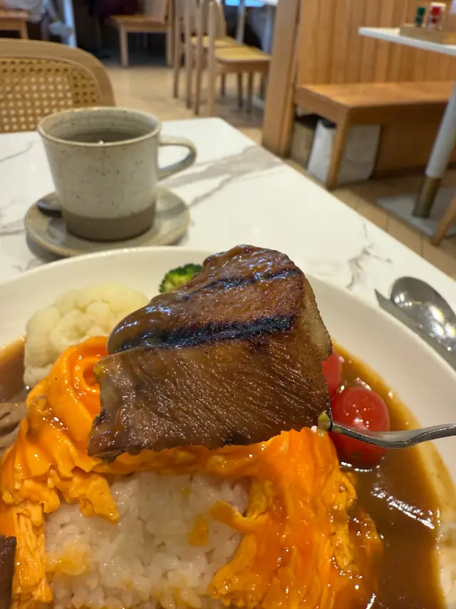 烤特上安格斯牛腰柳日式咖喱旋風蛋包飯
