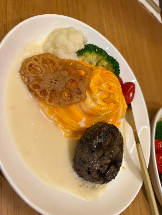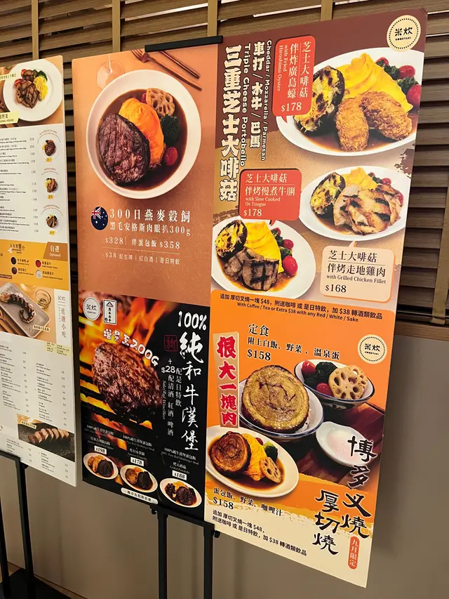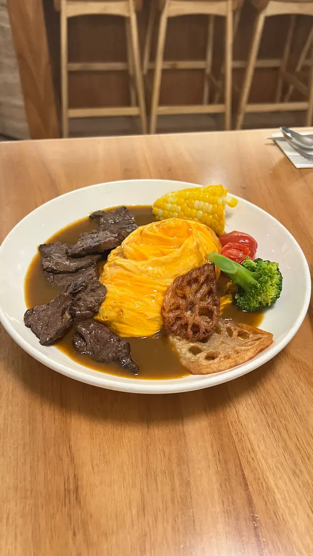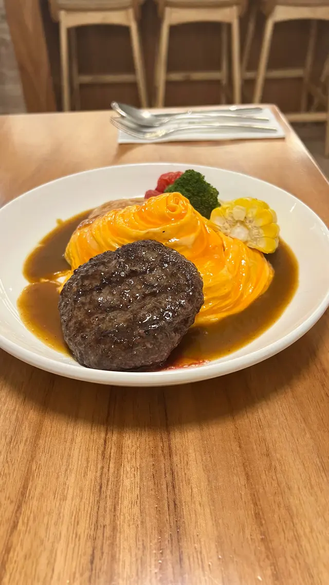 烤和牛腰柳細嫩多汁,只需簡單的鹽和黑胡椒調味,這樣可以突出和牛本身的優質風味,中等熟度,以保留和牛的嫩滑口感。 純牛肉手工漢堡扒,選用優質的純牛肉製作的手工漢堡扒,肉質鮮嫩且多汁,經過煎烤後帶有濃郁的烤香和美味。將煎好的牛腰肉和手工牛肉漢堡扒放在蛋包飯上,然後淋上熱騰騰的咖喱醬,讓整道菜吸滿咖喱的香味和濃郁味道。另選十六殼米既健康又有口感,配上咖喱很不錯,可以一試。如增加米飯的熱度會更佳。查看更多