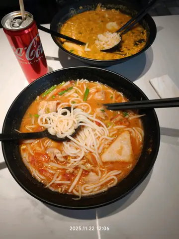 嚟到见到橙红橙红嘅汤饭,忍唔住即刻不左一啖嚟饮,正!虾味几浓㗎!汤底有小小结结地,但又唔会太结,所以配埋啲饭食都好match!见唔见到个羹入面有啲透透地明色嘅饭?其实佢唔系饭🤣🤣系啲脆脆嚟!口感真系好得意,如果你哋食就趁早食,因为浸耐左可能冇咁脆😉另外,呢个饭都有好多配料,有啲木耳,碎菜,菇,重点系佢啲虾都几大只,同埋有鱼片肉喺入面!所以都几丰富!我就嗌左呢个酸菜鱼饭,除左拣饭仲可以拣米线🍜佢都有几多鱼肉㗎!其实配菜都多🤣🤣好多芽菜同酸菜,钟意食嘅可以嗌嚟食。个汤底都算唔错,都够辣!点解我嗌饭?识食一定系嗌饭!😎😎因为我会一啖饭,加埋啲汤,等啲饭索晒啲汤汁,然后加一块酸菜鱼,一嘢放入口