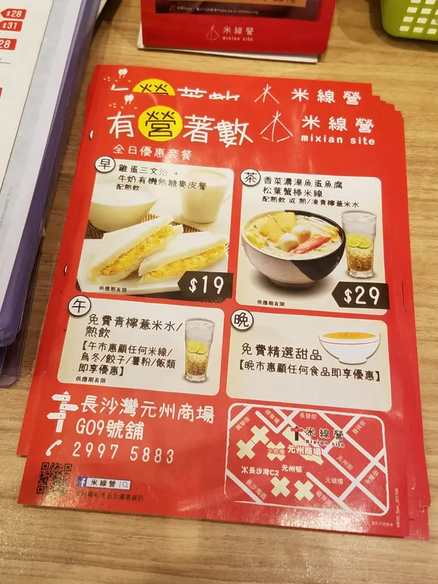 米線營 (长沙湾) 网址: https://s.openrice.com/QrLS0ljK600 地址: 香港長沙灣元州街303號元州商場地下G09號舖 电话: +852 29975883