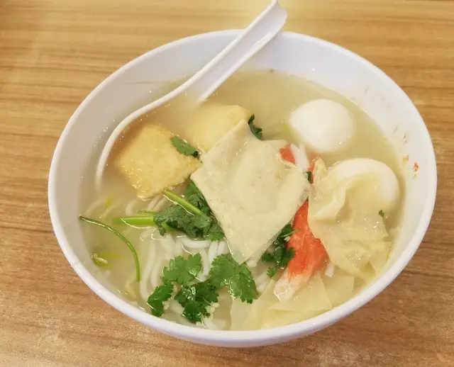 魚蛋魚腐松葉蟹棒香菜濃湯米線