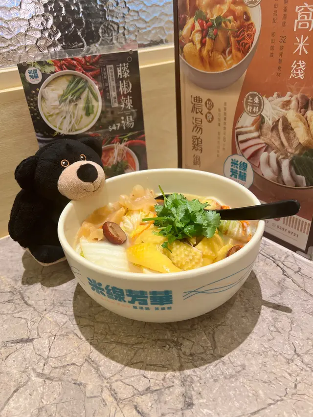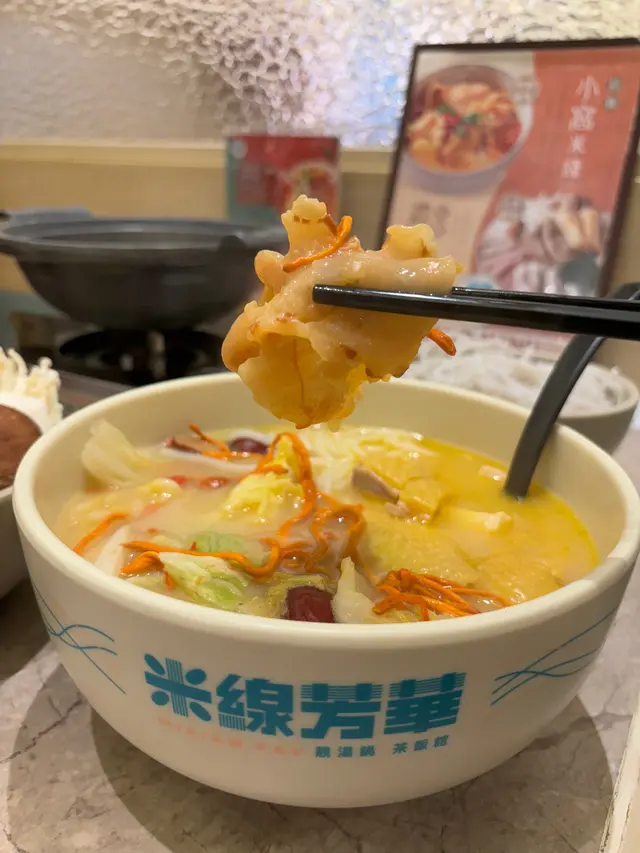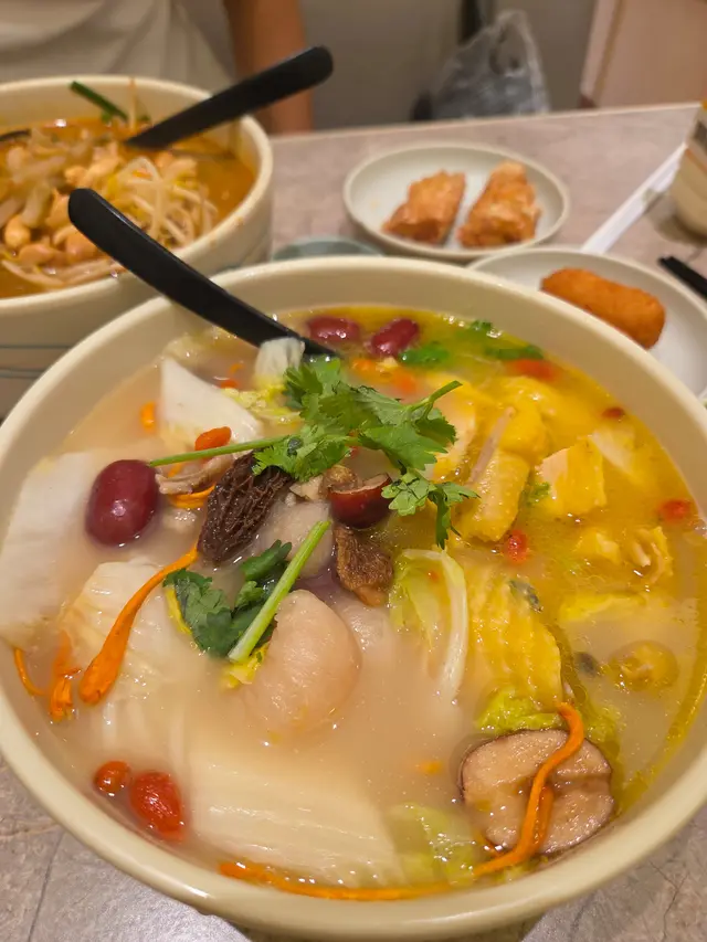 米線關注組成員出動啦!我同朋友1個係麻辣米線控,另一個中意藥膳米線🤪呢間絕對可以滿足哂咁多個願望🐥羊肚菌藥膳雞米線 $68首先米線好大碗😵雞件份量好多🐥🐥🐥,食極都有,就算雞胸位肉質依然嫩滑👍湯底藥膳味幾重,配料羊肚菌、杞子、蟲草花等等,令個湯帶甜味不知不覺飲左好多🙈,整體好足料,女仔可能會食唔哂🌶️腩肉花膠春卷重慶麻酸辣薯粉 $61叫左中辣,唔食得辣既朋友慎叫😂建議小辣都夠,麻酸辣同薯粉好夾🌶️,仲有啲花生🥜、榨菜🥬,腩肉🐷好厚切,啖啖肉好滿足,花膠春卷好貼心係另上💯,浸落個湯食都係咁正🦑炸墨魚棗4件 $20🍖大漠孜然雞翼3隻 $24🍡紅糖糍粑3件 $18呢度嘅炸物都幾出色,墨魚棗咬落彈牙有墨魚粒🦑孜然雞翼大隻惹味,入面保持到肉汁🐣紅糖糍粑煙靭彈牙,咬落有流心紅糖overall:佢地米線湯底同配料款式好多,個人中意藥膳米線多啲,整體佢地米線好足料大大碗同埋無加一💰 CP值非常高,仲有火鍋食,推薦…查看更多