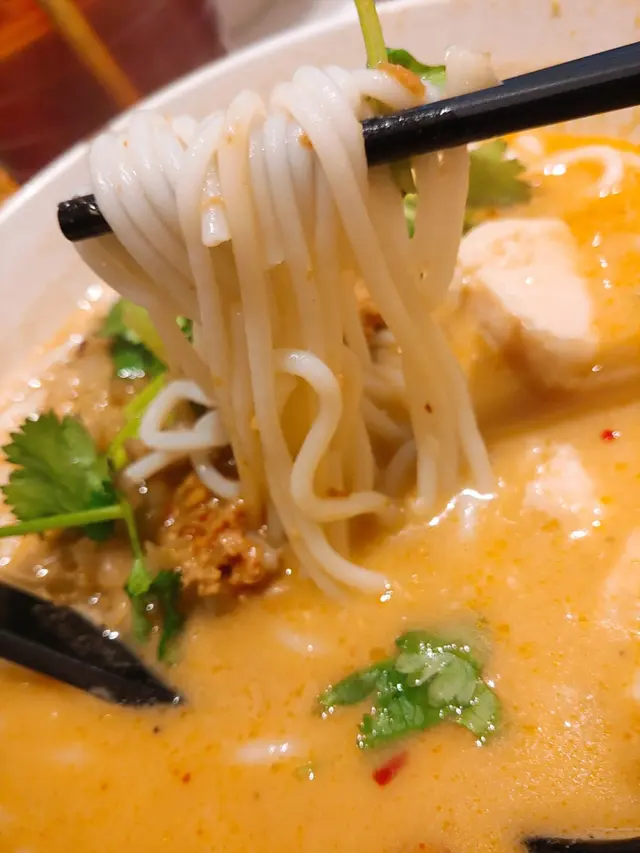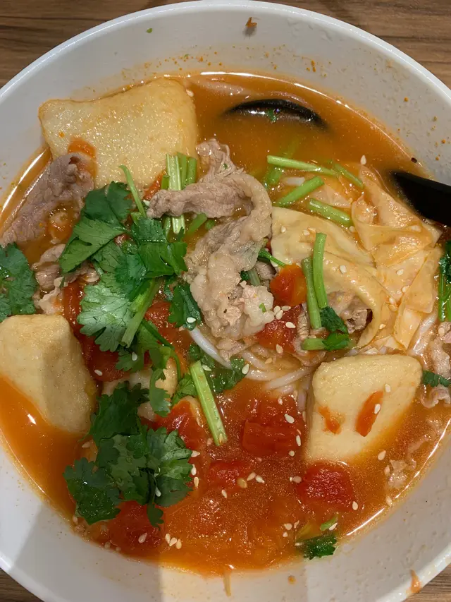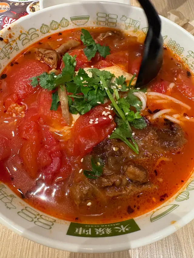 每隔一段時間,總要專程來吃這碗麻辣番茄米線,特別是肚餓的時候必選的中辣剛剛好,既能品到辣椒的麻香刺激,又不會蓋過番茄湯底的酸甜。米線吸飽湯汁,配料不馬虎,黑醋豬軟骨燉得軟爛,咬開滿是膠質,黑醋的酸香還能解膩;鹵水豬腸處理得乾淨,鹵味滲透嚼著鹹香十足。一口米線、一塊軟骨、一段豬腸,再喝口融合了麻辣與酸甜的湯,層次豐富到讓人滿足,這大概就是它讓人時常掛念的原因。熱水自助平時亦會定期有新的期間限定米線,但還是特別喜愛麻辣蕃茄米線…查看更多
