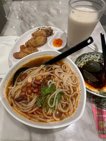 米线阵 下午茶 $50 A+B套餐: 脆炸单骨鸡翼$ 50重庆酸辣汤肉燥米线(细)(小辣)冻豆浆$ 3加香辣皮蛋(轻盈)$ 10酸辣粉正常发挥鸡翼脆热辣出炉 加埋酸辣酱好味😋豆浆都几清新 唔会太甜但又唔会系平时饮支装果啲味 健康之选👍🏻