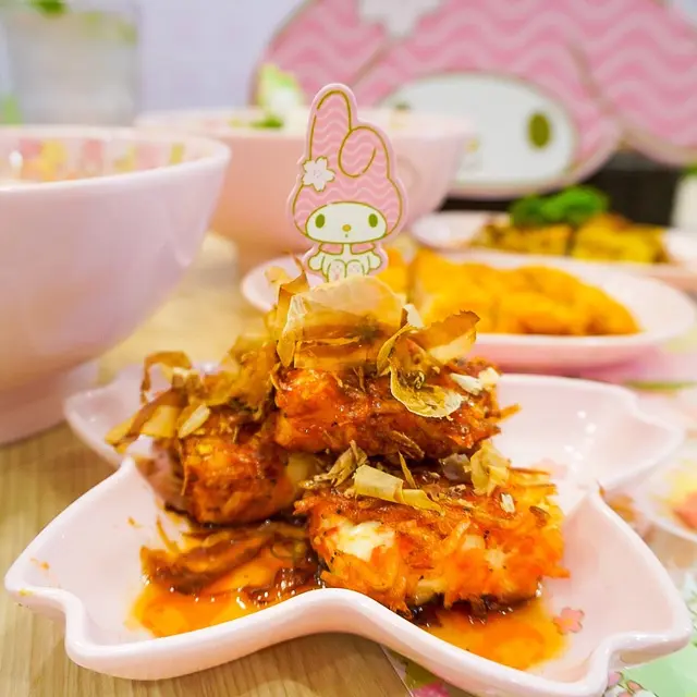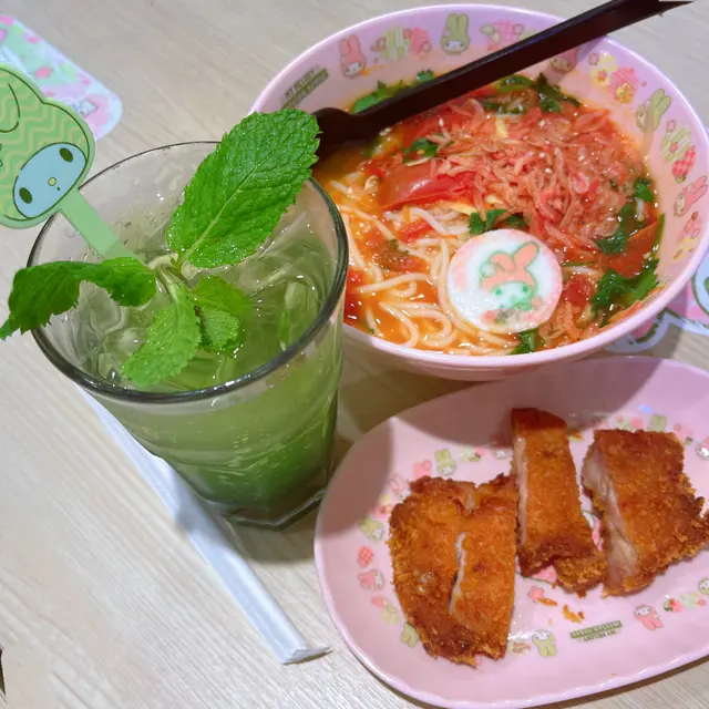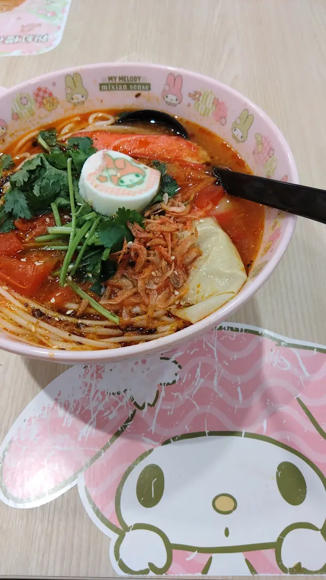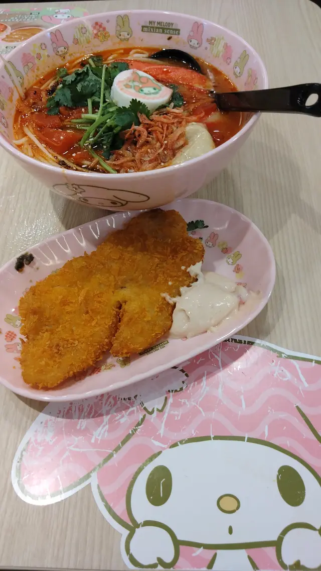 期間限定的 Melody 主題餐廳 <米線陣>,只有金鐘海富中心及旺角另一分店!早前,有一個星期六中午,專程走來金鐘,找一找這間分店!就算我不是 Melody 粉絲,也好奇想試,然後話俾 Melody 多年來粉絲的好姊妹知!輪籌等位約5分鐘店內外都有不少 Melody 呀! 好多打卡位!連 Menu 也是 Melody 造型Menu蕃茄麻辣湯米線 配炸魚柳 $68 +仿松葉蟹棒 $7蕃茄湯底叫微辣都辣到我咳呀!米線掛湯、口感帶煙韌;份量豐足!Melody 圓形那塊似是蛋白加 3D打印 Melody 圖案!炸魚柳好大塊又鬆脆,蘸沙律醬夠滋味!Melody 意式泡沫咖啡 $32由於,我在落單 app 找不到,我問男經理怎樣點這杯飲品?!他幫我落單點這杯飲品!Melody 意式咖啡真係令我久等嘞!3次追單,又曾經送錯港式咖啡!:(意式泡沫咖啡香滑甘味醇厚!查看更多