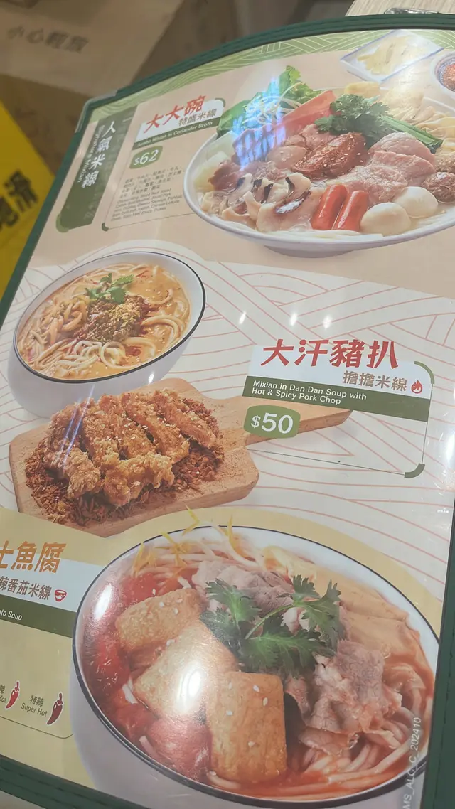 見唔係好多人等位,今日lunchtime 一個人食米線陣,試下新出嘅酸辣湯底。三款新品分別係酸辣湯魚片鴨血米線、酸辣湯牛肉牛丸米線,同埋酸辣湯墨丸雞球米線。我嚟到得返牛肉牛丸米線,冇得揀🥲酸辣湯冇得揀辣度,大概係小辣級別,酸菜份量唔少,湯底偏油,同酸菜魚嘅湯底類似。加咗$3轉薯粉,覺得呢款湯同薯粉唔太夾,薯粉索咗湯變到好油膩,但又唔係好入味。之前食過新鮮炸起嘅大汗豬扒同大汗雞翼,非常香脆惹味,食得辣一定會鐘意呢款蒜香椒香嘅風沙底。可惜今次呢份大汗豬扒上菜已經凍晒,切得亦太大舊,食得有啲狼狽。查看更多