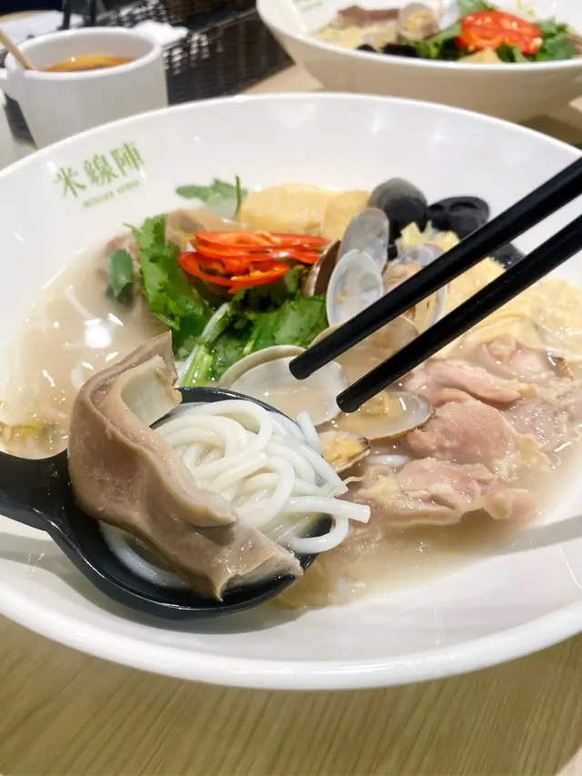 自己喜歡食米線,外出用餐時,都時常選擇食米線。是日平日,晚餐時段都幾乎滿坐。看看餐牌,有新出品嘅米線,於是試吓。🍜自由配搭冬菇,午餐肉,蕃茄湯底兩餸嘅自由配搭,冬菇腍,厚切嘅午餐肉係吸引嘅,蕃茄湯味濃。🍜自由配搭豬軟骨,擔擔麵湯底豬軟骨滲出淡淡又陣陣嘅黑醋味,肉質軟化唔韌,好味,擔擔麵湯底濃得來開胃,有爽口嘅炸菜,口感豐富。🍜胡椒花甲豬肚雞米線胡椒味淡,豬肚,雞肉都唔算有味,有啲失望。🍜擔擔麵配大汗豬扒大汗豬扒肉質外脆內軟,幾乎每次都必點嘅食物。與家人食米線次數甚多,亦都珍惜當下嘅時刻。查看更多