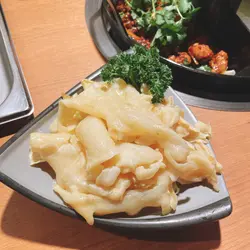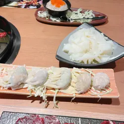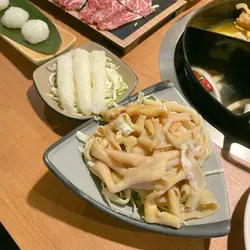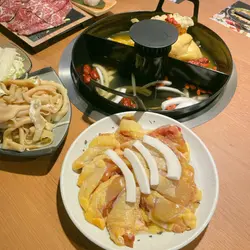 推开木系大门,眼前系一大幅食物写真墙,旁边贴满昭和风日式海报,柔和灯光衬住原木卡位。我哋拣咗靠窗位,睇住街景等食,男友仲偷偷影低我望餐牌嘅呆样📸。店员拎住个双拼锅嚟,昆布汤底清甜,寿喜烧酱汁浓郁,蒸气飘起𠮶阵已经闻到芝士鸡煲嘅香味🧀~牛柏叶 🌕🌕🌕🌕🌗 冰镇上枱够晒爽脆!浸落寿喜烧汤3秒即刻卷曲,挂汁能力超强,咬落嗦嗦声仲带淡淡牛油脂香🐄 鲜制五拼饺 🌕🌕🌕🌕🌕 彩色饺子拼盘好抢眼🌈 最正系爆汁和牛饺,肉馅混咗马蹄粒;韭菜饺皮薄到透馅,虾云吞仲有原只虾尾露出嚟,影相呃like一流📱蟹籽鲜虾滑 🌕🌕🌕🌗🌑 侍应帮手用匙羹刮落锅,粉橙色虾滑铺满橙红蟹籽🦐 煮完胀卜卜,可惜蟹籽存在感太低,虾肉弹牙但调味偏淡 黄金芝士鸡煲 🌕🌕🌕🌕🌑 揭盖见到拉丝芝士好治愈~鸡件嫩滑到离奇,仲有粟米同年糕打底🧀 不过煮耐少少就变咸,要快啲KO佢澳洲顶级和牛封门柳 🌕🌕🌕🌕🌕 油花靓到似大理石纹理🥩 寿喜烧汤轻涮5秒,入口即化仲有股奶香!男友争住encore多碟,果然贵得有道理💸 总结:人均$400食到捧住肚走,最惊喜系个和牛同饺子拼盘🥟 坐得舒服又唔会赶人,睇住个锅咕噜咕噜滚特别有幸福感~记得预早book窗边位,顺便呃多几张打卡相先🤳…查看更多