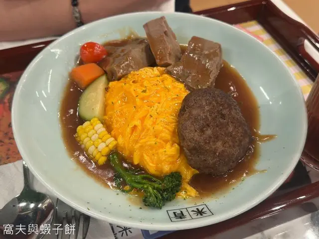 久仰「米青蛋包飯公司」的大名,也見過門外的人龍,窩夫與蝦子餅趁重陽節假期去試試,下午6時15時左右到達,不用等位。窩夫點了西班牙黑毛豬肉餅配白飯($88),加了燒汁雞髀菇($10),自選醬汁選了蘑菇忌廉汁,很快便出水,有改善空間。蝦子餅點了「雙拼」的「豐盛蛋包飯」,100%純和牛漢堡扒拼厚切牛脷芯配白飯($138),份量很足。總共嚐了四款餸,窩夫與蝦子餅心目中排行第一的是厚切牛脷芯,名副其實的厚切,軟硬適中。燒汁雞髀菇跟厚切牛脷芯同樣厚身,水份充足。西班牙黑毛豬肉餅比100%純和牛漢堡扒略勝一籌,肉味較濃,外層較香口。100%純和牛漢堡扒稍嫌偏乾。…查看更多