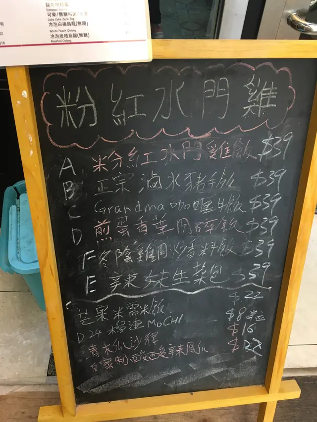 係依間店既前身時曾到訪一次 都大概2年前咁上下既事 咁岩上網搵番之前間店先知改左名 價錢都冇乜點變 都係抵到爛位置上真係唔明顯 可能因為咁價錢比較低🤔 人流都比較少 不過相信識貨之人或者附近番工既人都會將依度當飯堂 用餐期間都有外賣客光顧比起之前 食物既款式多左 。 當然主打都依舊係海南雞飯啦 專誠黎食海南雞既我當然會叫「粉紅水紅雞飯」($39) 。 其實唔明點解叫粉紅 不過可能係因為間店叫粉紅水門雞 佢主打黎所以咁叫🤔🤔🤔 食物好快到 是以外賣餐具盛裝 感覺都幾衛生。 而飯量絕對唔係一般既多😂😅 聽到及後入黎幫襯既上班一族同朋友呻(?) 如果掉番轉雞多飯少會更好😂😂 飯應該是香茅油飯, 入面有香茅同油膏(?) 證明真材實料🤔😅 當然咁既價錢唔好期望佢既賣相會似五星酒店咁擺盤令。而雞方面 ,個人覺得幾讚、雞相當滑同嫩 ,不過應該廚師切既手勢一般 啲雞仲係連埋一齊唔切到底 食嗰陣有小小唔方便。 不過整體都唔錯 值得再黎查看更多