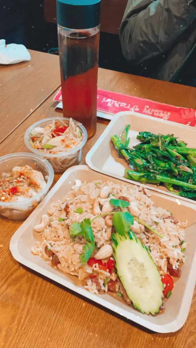 完全沒有想過旺角鬧市街頭也有如此便宜的平民美食。粉紅水門雞飯 - $36想不到海南雞的份量也頗多,肉也算嫩滑,皮略帶油脂也可以接受;雞油飯香口不油。冬蔭雞肉炒香料飯 - $36炒飯炒得乾身不油膩,除了一片片的雞肉外,有微辣的冬蔭功,充滿泰式香料味,有一粒粒腰果好有口感。泰姐製馬拉盞炒芥蘭 - $18香辣的馬拉盞正好掩蓋芥蘭的苦澀,好爽脆。芒果糯米飯 - $18芒果片鮮甜多汁,軟糯的糯米飯充滿椰香。冷泡白桃烏龍 - $8清爽的烏龍茶香,有白桃的香甜。冷泡炭培烏龍 - $8濃郁一點,有炭燻香。查看更多