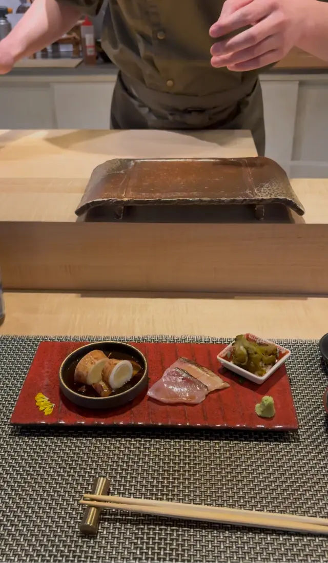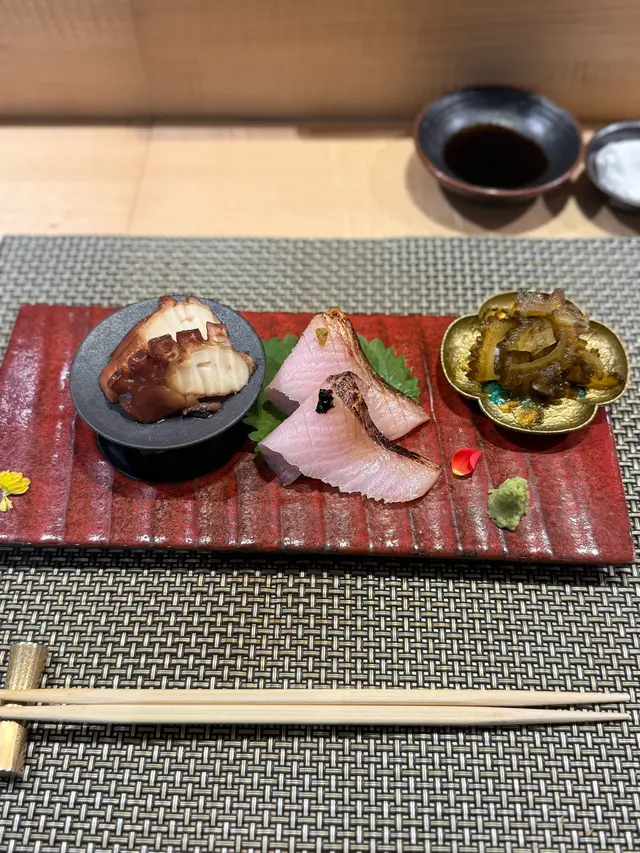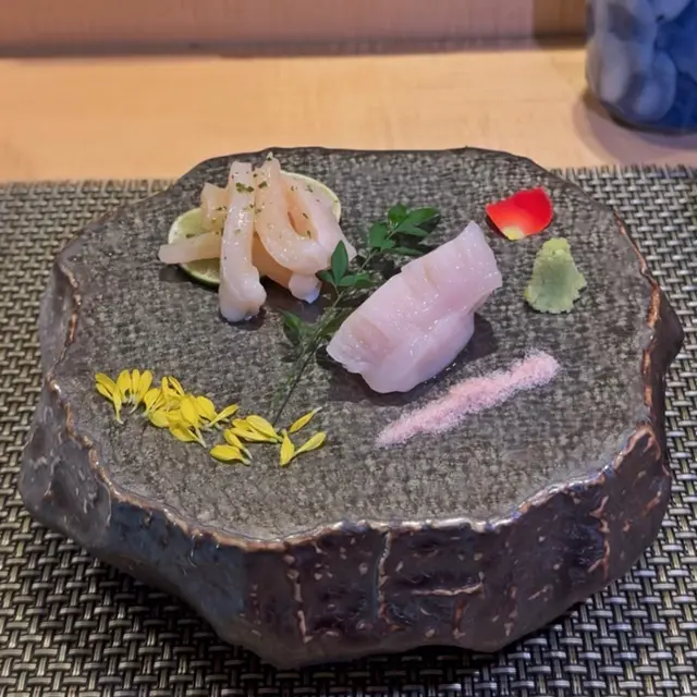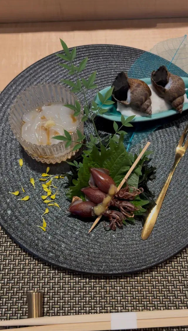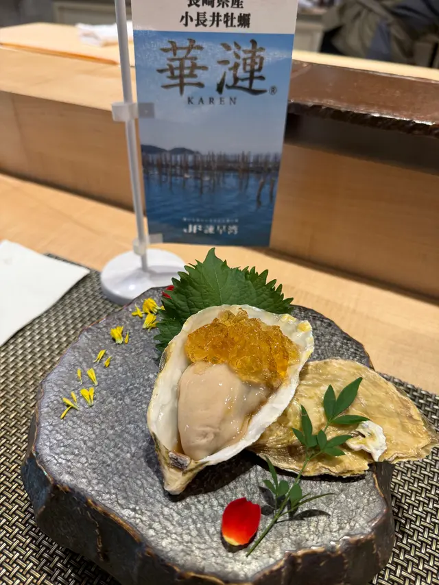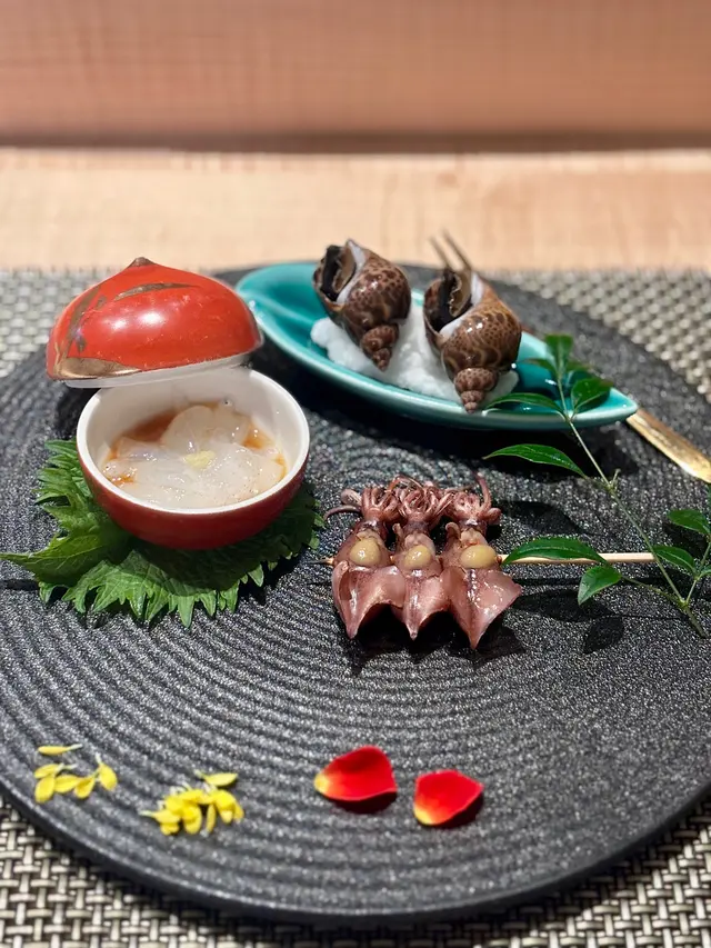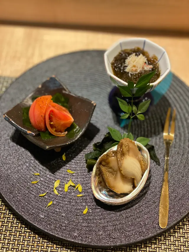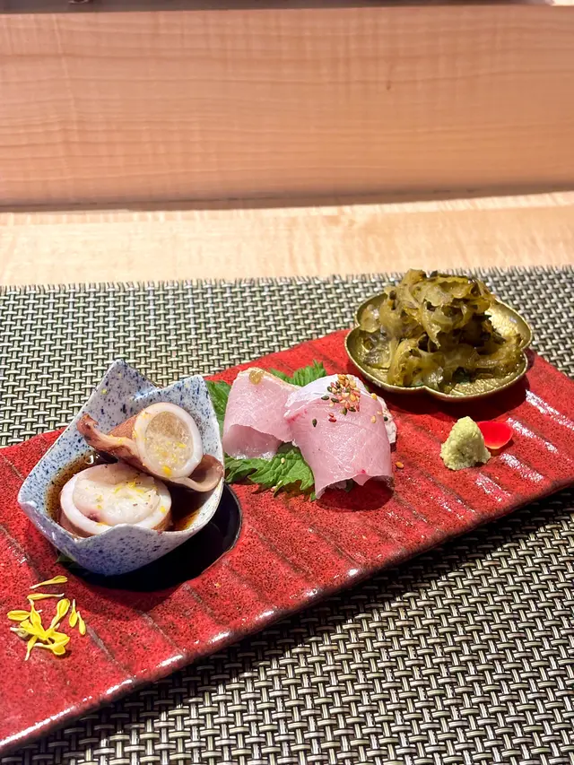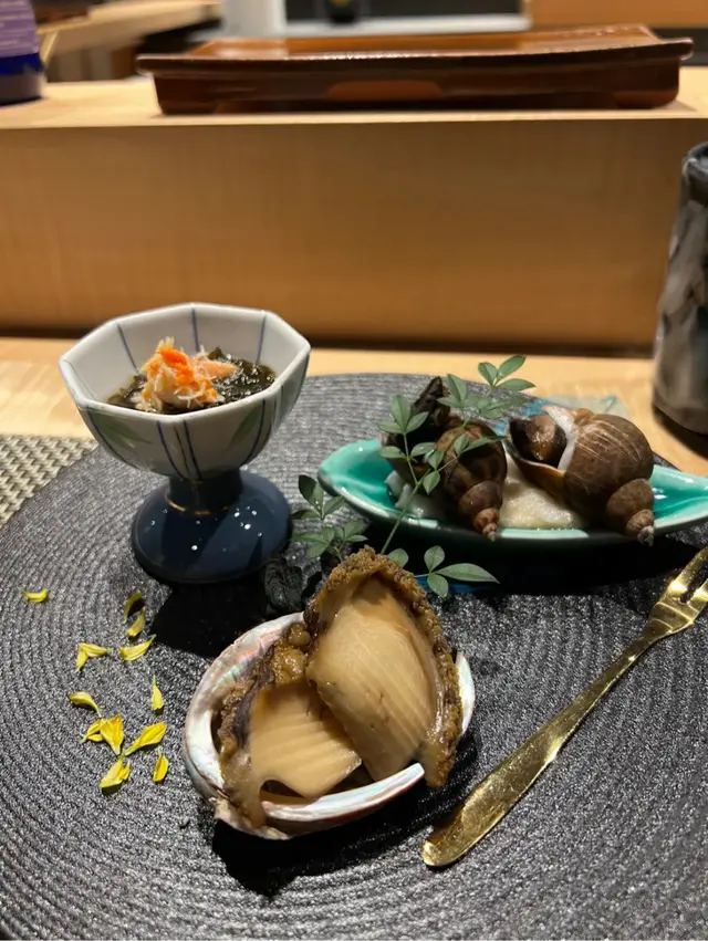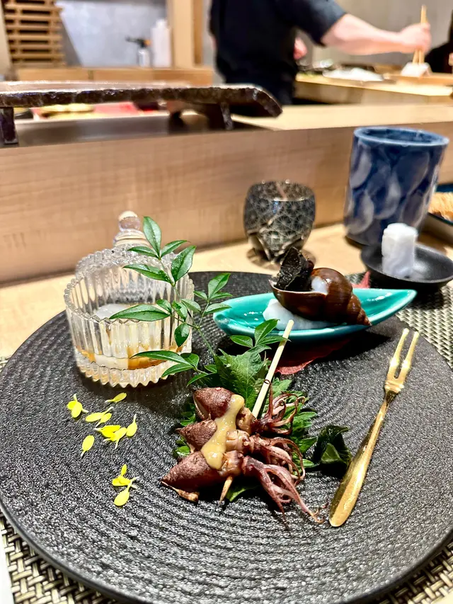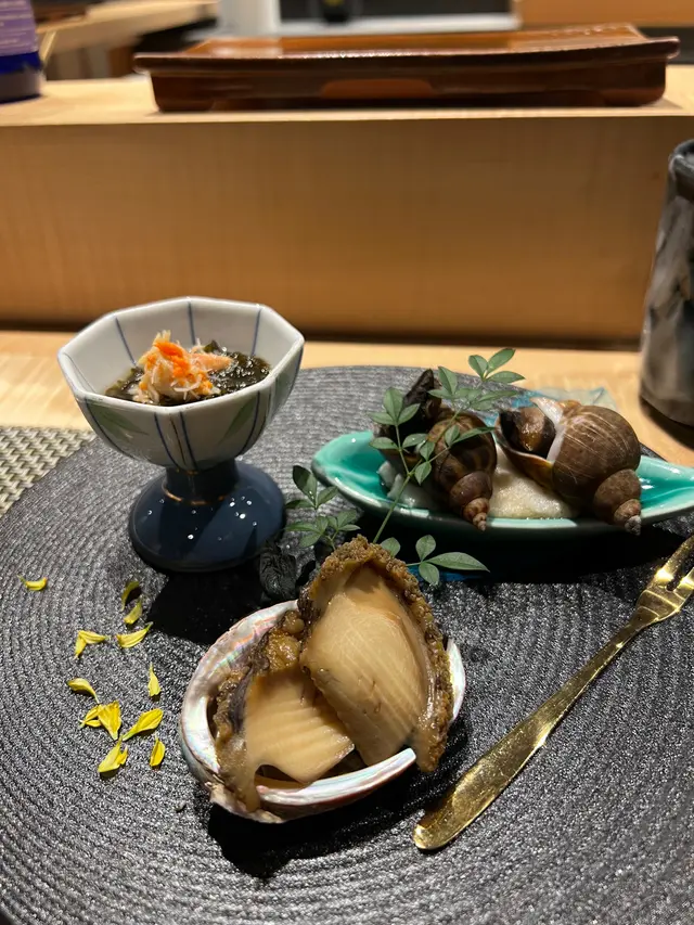 尖沙咀旺區坐擁漆咸圍四樓全層,餐廳走型格創新路線,整棟大廈有分為日式📚✏️文具店、壽喜燒店,仲有庭園花園🌳勁chill嘅omakase 店。當晚就再品嚐廚師發辦 ・粋,餐廳食材全部✈️日本直運,不同季節都有時令新鮮食材,真係要經常嚟回味一下日本🇯🇵嘅味道啊☺️𓏸𑁍𓏸𓈒𓂃𓂃𓂃𓂃𓂃𓂃𓂃𓂃𓏸𓈒𑁍ᵂᴴᴬᵀ ᵂᴱ ᴼᴿᴰᴱᴿᴱᴰ🌸花 Hana HK$1,680/位小食開胃脆口小吃~雪鱈魚干🐟先付❁ 汁煮日本黑梅貝/ 慢煮鮑魚/果茄沙律慢煮鮑魚味道濃郁,日本黑梅貝亦都好入味;配有日本德島果茄🍅和沙律汁。刺身/酒肴❁ 鱈魚白子 配有酸汁和加有柚子🍊和蔥花,白子入口口感creamy👍🏻❁ 白象拔蚌 (即日本ha見貝)大廚先將白象拔蚌切有間紋,口感爽彈,再加青檸汁和伴碟的Wasabi 和海鹽,可因應需要調味。❁ 火炙獅魚腩/慢煮八爪魚/沖繩苦瓜-火炙過的獅魚腩(即野生油甘魚),迫出香口豐富油脂,入口滿滿油香👍🏻 大廚在前面一件加有紫菜醬,而後面一件加有柚子糊椒。-慢煮得軟腍的八爪魚-清味蕾的沖繩苦瓜季節性料理❁ 香箱蟹主要食蟹肉和蟹籽,大廚已經拆好了蟹肉,再加上蟹醋入口啖啖肉,超正🥰❁ 鮟鱇魚干蓉最中餅質地軟腍豐腴,而且一啲都唔膩,仲配有日本威化餅和脆口黃蘿蔔,增加口感層次。熱食❁ 鹿兒島A5和牛🐮A5和牛真係無得輸,入口油脂滿滿即溶化!配有燒汁、日本蕃薯🍠和青椒🫑。手握壽司七貫🍣❁ 北海道帆立貝~ 全無急凍過直運香港勁鮮甜!❁ 甜蝦 ~ 鮮甜❁ 象拔蚌🐚~ 新鮮爽口象拔蚌加有柚子汁🍊❁ 鮫鰈魚 (即右口魚)~入口超級滑🤤而後徑感受到雙重口感🤩 大廚係上面一片鮫鰈魚火炙過,迫出滿滿油脂,再配另一片嘅肉身爽彈,真係一絕👍🏻❁ 中拖羅 ~大廚用刀藝先𠝹花起筋,入口軟滑!❁ 大拖羅 ~夠晒肥美❁ 北海道赤海謄 ~ 鮮甜又creamy椀物❁ 自家製香濃魚湯デザート❁ 中洲蜜瓜🍈…查看更多