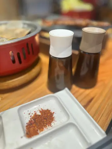 ,特意在没有那么多人的时间段,来这里吃的。(大约下午5:00左右𠮶啲时间段。)环境好大,座位嘅位置都唔会好迫,啲嘢都摆放得好企理,间舖好有设计感,一包包‘’吊‘’住𠮶啲系纸巾觉得咁样吊住好得意,生平第一次见。😂依一间舖叫嘢食系用QR code落单嘅,方便我依啲正宗i人。每张枱上面都有放竹签嘅筒,辣粉同埋孜然粉,仲有牙签呢啲基本嘢。本身见到有个炉喺度,以为系自己烧,点知原来系厨房整完出嚟之后放喺个炉果度,个作用系帮啲嘢食保温。(觉得呢一个点几贴心