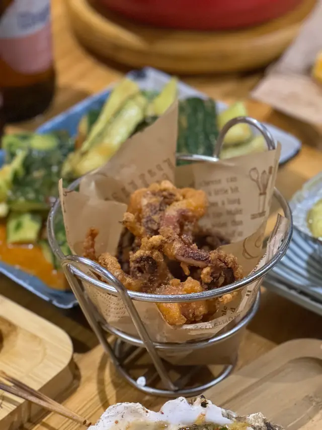 同好耐冇见嘅中学同学畅谈一番,当然要揾间方便好坐,又有特色嘅串烧店享受吓,依家仲有$29一杯生啤🍺不过第2日仲要返工所以我哋叫咗手打柠檬梳打🍹一边食串烧一边饮梳打爽一爽!🍽️ 烤鲜芝士生蚝 + 烤原只鱿鱼王呢间串烧店无论闲日定假日都好多人,我哋叫咗呢个招牌嘅烤鲜芝士生蚝🦪同大大只烤鱿鱼🦑真系够晒惹味🤤🍽️ 大漠羊肉串 + 爆汁五花肉串烧我哋叫咗羊肉串🐐同五花肉🐖真系好想赞吓呢个羊肉串🍢堂食只系$29有两串之余,仲要热辣辣好厚肉,够晒Rich🤤五花肉就预期中好味!🍽️ 烤牛五花趾 + 美国牛肩肉牛魔王又点可以食牛肉串🐮我哋都系叫咗烤牛五花趾同美国牛肩肉串,有热盘一直热住我哋啲串烧,keep住热辣辣又够晒牛味!正呀!🍽️ 蒜蓉烤原只茄子 + 焦糖菠萝食咗咁多肉类,点都要食返少少蔬果,串烧菠萝够晒多汁,原只茄子🍆大大只配埋大量蒜蓉,真系Perfect Match🤤太好味啦!🍽️ 炸黄金小馒头 + 粗店凉面食咗咁多串烧,好想食返啲甜嘢滋润吓个胃,呢个炸黄金小馒头系必食嘅野之一,馒头炸特脆卜卜配埋甜蜜蜜嘅炼奶,超级夹,想饱肚仲叫咗个凉面添,我哋唔食辣,所以叫咗个唔辣嘅凉面,估唔到有几出色㖞!我哋太耐冇见一倾就倾咗两个几钟,店舖都冇赶我哋,而且性价比几高,串烧价钱实惠🍢🍺