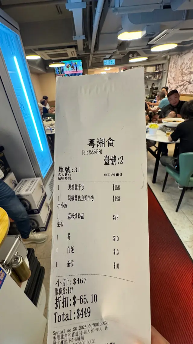 有朋友生日, 正為找地方食飯頭痛, 朋友介紹北角《粵湘食》主打粵菜湘菜, 有辣有唔辣。香港人一般不習慣食太辣, 老闆娘很細心總是問清楚要不要辣。包房裡提供卡拉ok設備不另收費 。掃咗六款招牌菜!葱油鷄超滑,啖啖肉有蔥油香!醬茶鴨燻得好正,入味得嚟唔柴口。黃金蝦啲鹹蛋黃多到漏,脆卜卜超邪惡~鼓汁蒸白鳝肥嘟嘟,豉汁撈飯無得頂!咸豬手肉鹹香, 超好味!咕嚕肉酸甜開胃,外脆內軟冇肥膏。之後再點多十個菜, 人均消費才兩百幾, 成枱無雷,食到飽, 歌也唱飽,勁滿足!要回訪啊!…查看更多