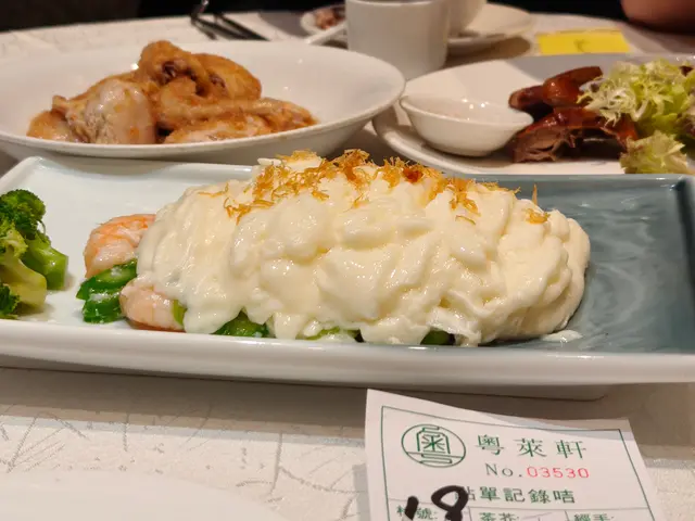 蔥油清遠雞、脆皮乳鴿、蒜蓉是蔬、順德大良海鮮炒奶、薑蔥台山蠔、潮州粉果、香煎韭菜餃、家鄉特色炒米、杞子桂花糕、芝麻卷