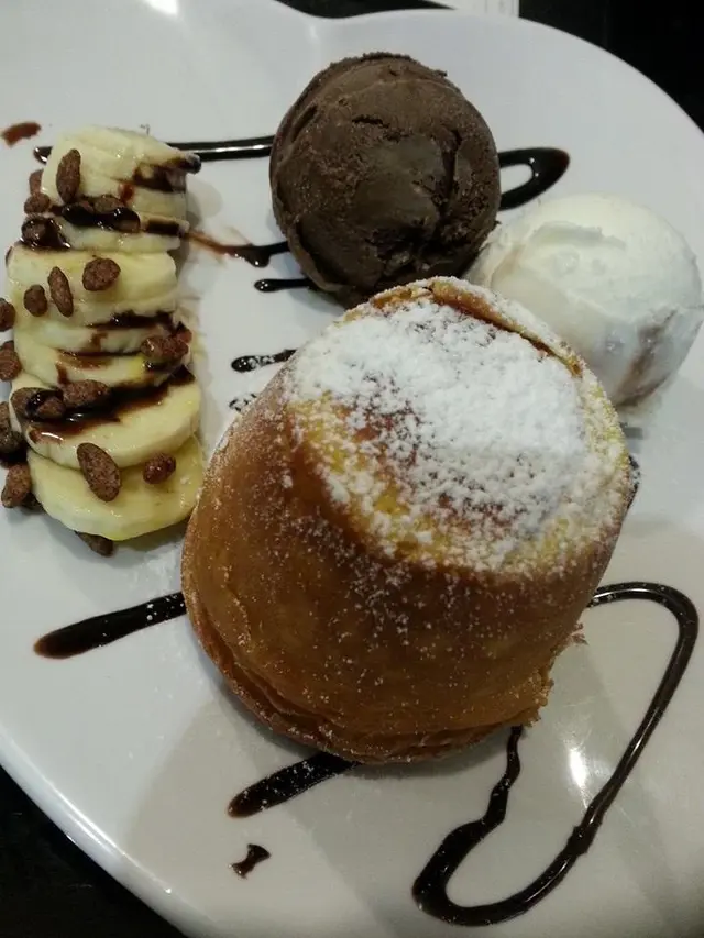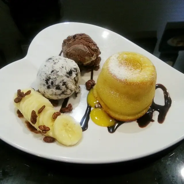 店名:糖宮地址: 大圍積信街61號地下好味指數:8.3/10價錢:$50香蕉心太軟朱古力和抹茶心太軟吃得多,香蕉心太軟真是第一次聽。香蕉心太軟是即叫即製的,大約等了十分鐘便來了。上枱時是熱燙燙的,賣相沒有什麼特別,平日吃到的是黑色,現在是黃色。出奇的是這個心太軟配有兩球雪糕(外面甜品店只得一球)。心太軟是黃色,外皮不夠鬆脆,往中間切開,香蕉味的流心一湧而出。香蕉的味道挺為突出,而且很特別,值得一試。…查看更多