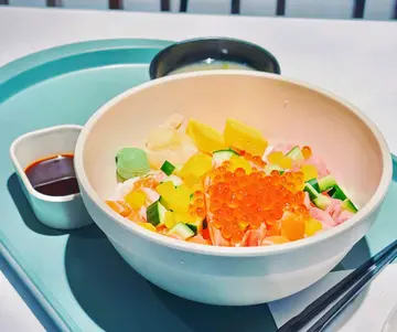 鲗鱼涌太古坊原来都有个food court,真系唔系朋友介绍都唔知,劲大劲舒服。入面有多国菜,连港式两𩠌饭都有,仲有饮品区,可以叹番杯啡。🍱 角切鱼生饭配面豉汤🥢份量十足而且都好新鲜🌟同埋都好多鱼子,钟意食鱼生既朋友就岩哂啦😍一次过满足哂🍖牛肋条拼炸虾饭🍤呢个牛肋条好入味,口感有层次!酱汁都好惹味,同埋个炸虾外脆内软😝唔会太油腻!Latte☕️有拉花!系偏nutty既口味😇系一杯醒神既靓啡🥰呢度位置几方便,出地铁站入左太古坊之后见到左边有个好大既招牌就系,下次会再去。