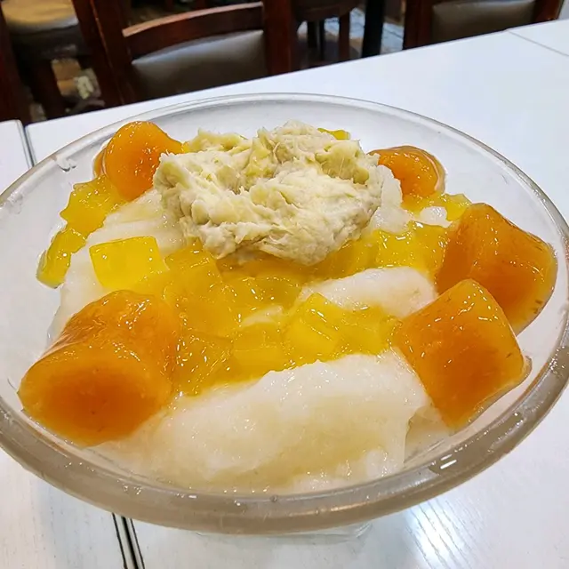 呢間甜品店之前一直都係叫外賣,今次第一次到店食。甜品有好多選擇,鍾意食榴槤嘅呢度亦都有。榴槤銷魂 $52有少少榴槤肉,好香甜,配埋刨冰超冰涼,另外伴碗方面,餐牌係寫綠茶點子,但上枱是係橙色嘅啫喱,我唔肯定係咪綠茶點子,另外仲有我鍾意嘅芋圓。刨冰入面有奶凍,整體都幾豐富好味。榴槤多少少會仲開心🤏🏻🤏🏻櫻之雪山 $46牛奶棉棉冰好香滑,側邊有草莓碎酸酸甜甜,另外亦有啲白玉(小丸子),加埋個雲呢拿雪糕,成碗足夠凍到爽。但餐牌寫有“日本鹽櫻花”……唔見嘅😅兩個甜品整體唔錯嘅,係有好少嘢同餐牌有啲出入,但唔中影響。開始天氣熱喇,行過不妨入去消暑一下。查看更多