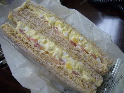2010年3月25日 ( 3-2 ) 荃灣 ( 紅嚐坊 - 1 ) 行山乾糧日程:( 蘇濠 - 紅嚐坊 - 阿蘇火山拉麵 )吃完早餐後,行過( 南豐中心 ),見( 紅嚐坊 )啲三文治幾靚,買件來做今天的行山乾糧。碎蛋火腿麥包三文治:麥包內含黑芝麻,碎蛋為熟雞蛋,火腿質素幾好,還有幾片生菜,加上三文治醬,味道鮮美好吃。查看更多