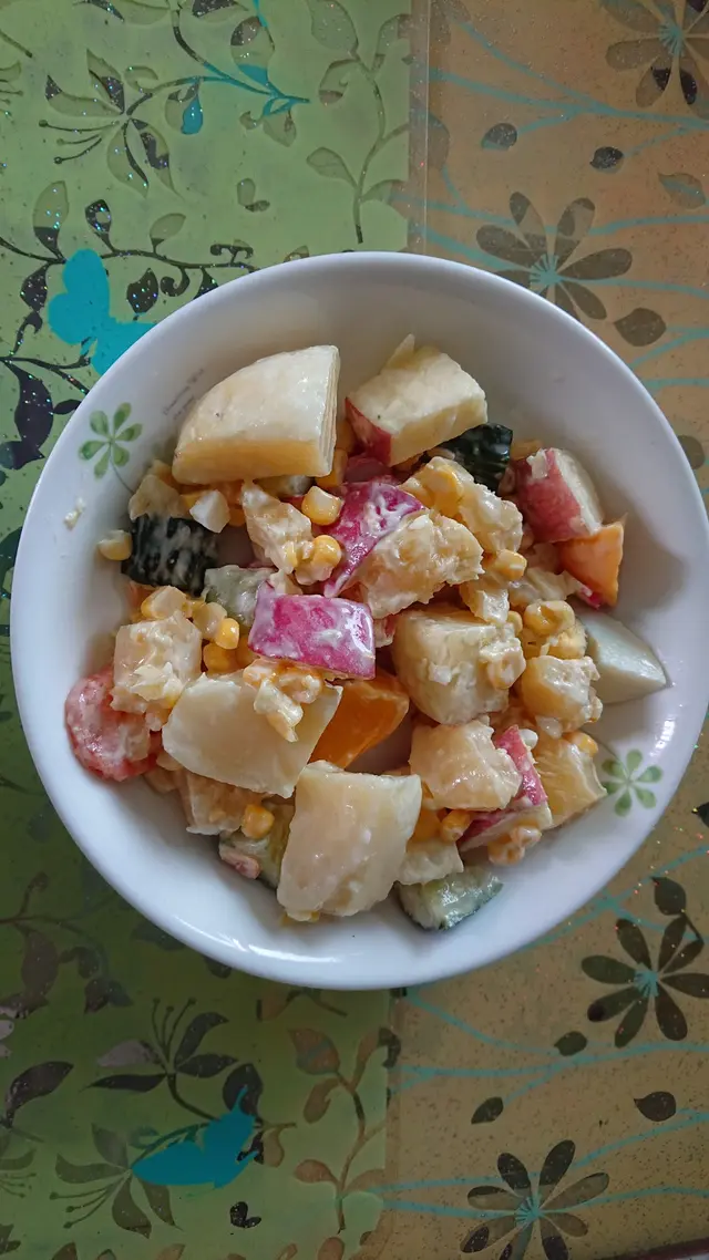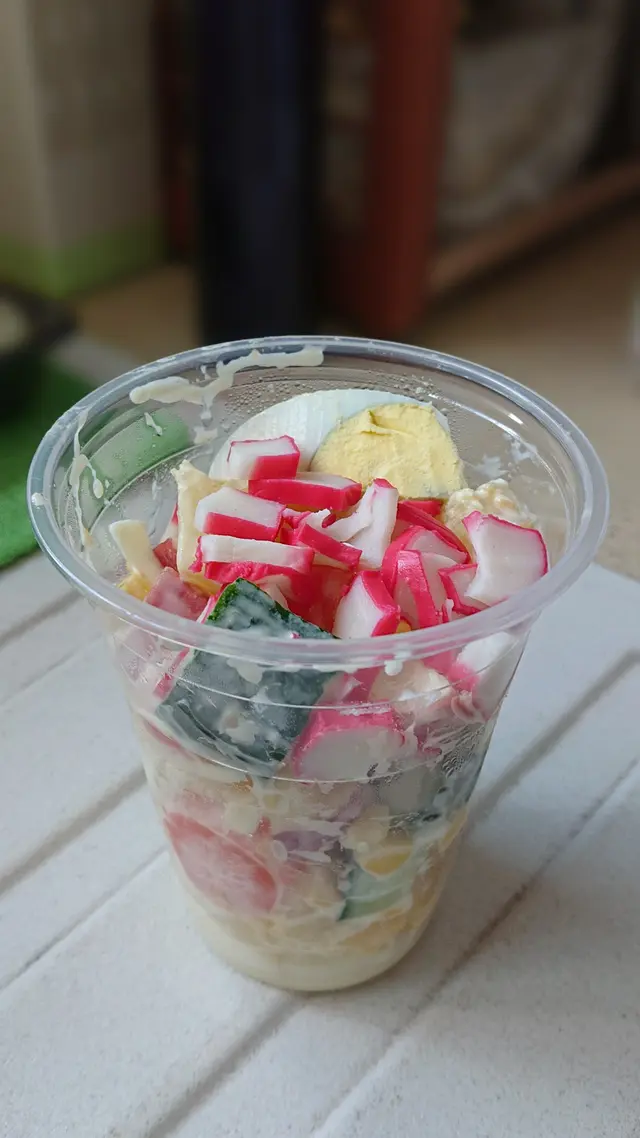 每次行過這路段都聞到小店傳出來的咖啡味,今次停下來看看有什麼賣的,咖啡應是主打,餐牌上標示出不同種類的咖啡品種,此外還有特飲。除了飲品也有賣吃的,有熱狗包,多士,凍櫃內也有一些三文治、鮮榨果汁和沙律杯。因為今天不肚餓,沒有幫襯買咖啡和包類,只買了一個什果沙律杯回家。沙律用透明杯裝,可以看到五顏六色的食材。回家打開仔細見,面層放滿了蟹柳粒,紅噹噹很搶眼,下面就有其他什果粒粒,放杯內難吃到下層,我倒到碟子上吃,什麼材料一目了然,有紅蘿蔔、紅蘋果、青瓜、菠蘿、桃、粟米、薯仔、烚蛋半隻。顏色美觀吸引食慾,薯仔肉眼看似雪梨,吃進口才知道是薯仔,這沙律杯味道清甜,除了薯仔和蟹柳,其他粒粒爽口,沙律汁也不會多得變成糊,稀稀薄薄又恰到好處,每粒食材都掛上一些,份量剛剛好,夏天吃開胃。查看更多