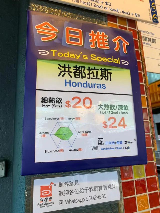 紅嚐坊嘅咖啡飲咗好多年🌟🌟🌟由以前喺荃灣南豐室內到而家喺南風外圍每次經過都有陣陣咖啡香☕️🥰最鍾意飲佢哋嘅牛奶咖啡👍🏻👍🏻👍🏻入口順滑,最鍾意佢哋嘅咖啡唔會帶酸味😋而且價錢非常親民👌🏻咁多年以來價錢都冇乜變而且佢哋嘅蒜蓉多士即叫即整👌🏻5分鐘即刻有得食蒜蓉多到爆炸仲有多士有成吋幾厚而且多士金黃色卜卜脆🌟每次一整完拎到上手明知熱到辣手,都忍唔住即刻擺落口 👍🏻希望呢種有質素嘅小店長做長有👍🏻👍🏻👍🏻查看更多