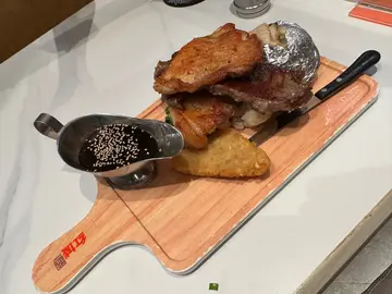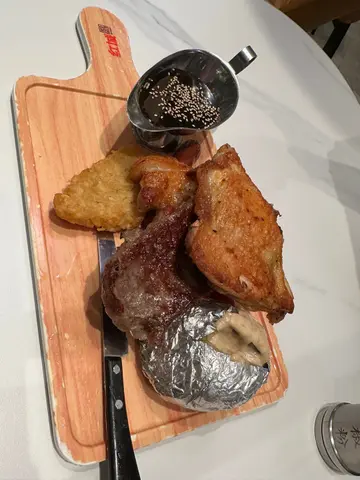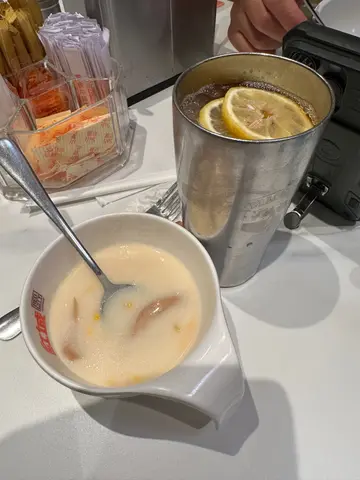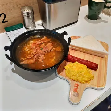 约左人到D2睇戏,睇前谂住食啲野,商场入面几乎无店咁早开,到街上揾食吧,远远见到红城,大大间茶记外观唔错,试呢间吧。无枱得返吧枱,ok啦求其食下啫,各自各扫code落单先。咦,原来仲有早餐㖞,三十几蚊系平嘅,唔怪得咁多人。⭐沙嗲牛肉公仔面配西煎双蛋&牛油多士自己落左呢份餐,经典港式早餐配撘😆沙嗲牛……几失望,无沙嗲味之余仲带点酸酸辣辣??奇奇怪怪的🤔前双蛋无特别啦,牛油多士涂左好厚牛油,正。⭐沙嗲牛肉公仔面配鸡肉肠并炒蛋&牛油多士朋友点左呢样,落完单发觉大家点差唔多嘅野😆哈哈。佢份滑蛋几吸引,肠仔正常味啦。⭐热杏霜心有灵犀居然一齐点咗热杏霜😝但舖头应该好少人饮呢样,我觉得个水吧师傅唔识得冲,落咗劲多杏霜粉,两杯嘢结他他程啫哩状,似系食紧杏仁糊多过饮紧杏霜,某程度上嚟讲系咪叫抵咗?畀咁多杏酱粉你饮😆食物味道一般,店内环境一般,但价钱够平,所以人多都系有道理嘅。BTW,自助落单自助畀钱,除咗上菜有人手之外,几乎全程见唔到伙记。…查看更多