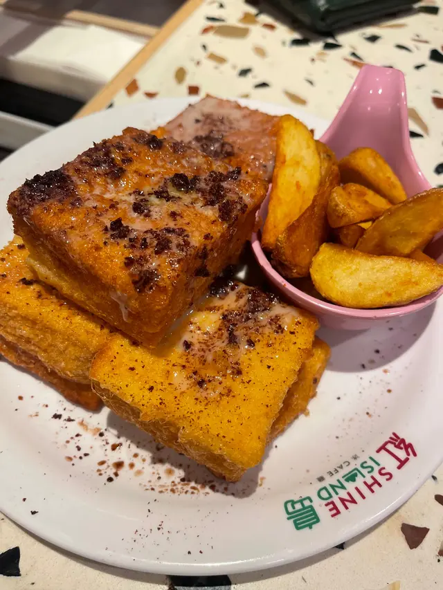 在旺角發現一間跟紅茶很像的茶餐廳,今天很想吃西多士,下午茶餐從2:30開始,有兩款西多士選擇。想吃甜的選了阿華田脆脆西多,下次再試芝士西多,阿華田脆脆西多是在西多士表面灑上阿華田脆脆,兩塊多士中間抹上牛油,西多士本體是好吃的,外酥內軟,但因為只有在表面灑上阿華田脆脆,整個西多士沒有什麼阿華田味道,好像跟阿華田的關係也不大。這個套餐跟了薯角和飲品,我選了很喜歡的茶走,茶走有茶味但如果有多些煉奶會更好。查看更多