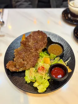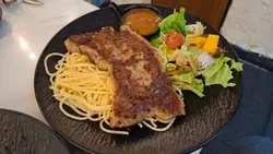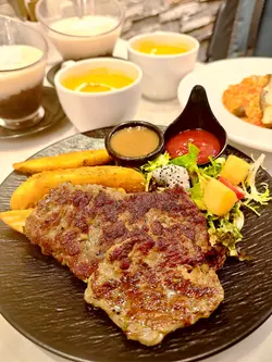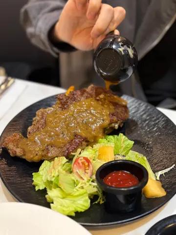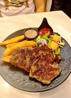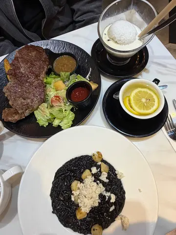 今晚系太子食饭,去左间抵食既餐厅,食物款式好多,中西都有,重点系晚市价钱好平!套汤有汤跟,可以简中汤或忌廉汤。忌廉汤入面仲有蚬肉,好鲜味。香煎西冷牛扒沙律菜 唔洗$100就有个咁大块既扒!! 牛扒味道浓郁,肉质结实带有嚼劲,配埋黑椒汁,更加香!薯角好昋脆,而且又有块! 沙律菜除左菜仲有水果,好解腻。香煎带子 蟹肉伴墨鱼汁烩意大利饭带子煎得岩岩好,又唔会干身 ,意大利饭入面好多料,有菇,有芦笋,口感丰富。墨鱼汁调味岩岩好,整体唔会太咸。餐饮叫左红豆冰,造型有趣,中间系碎冰,红豆够甜,下次黎都会再叫返呢个!…查看更多