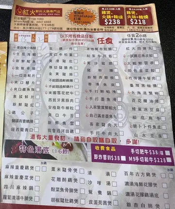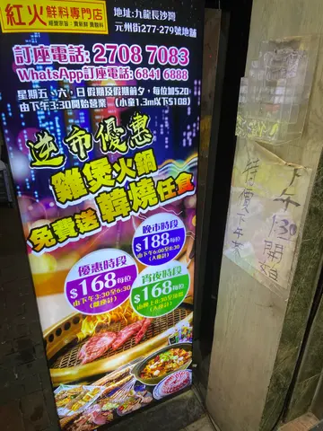 「红火鸡煲」以高CP值的鸡煲火锅和任饮任食闻名,夜晚与几个朋友来食$228的街坊鸡煲火锅套餐搭配新鲜田鸡与任饮啤酒,带来热闹满足的体验。#街坊鸡煲火锅($228/位)- 鸡煲锅份量十足,辣汁浓郁香辣,入口刺激,适合爱辣食客,小辣选项较温和。- 第一份煲鸡肉稍少,但可以免费加鸡,保持汤底鲜味。- 火锅料种类丰富,鲍鱼略欠鲜味,但整体质素稳定,符合街坊火锅期待。#手切牛(加$30任食)- 牛肉嫩滑,油脂适中,质素优良,牛肉爱好者必点。- 任食选择大幅提升满足感,性价比极高。#田鸡- 田鸡新鲜度惊人,上桌时仍具活力,肉质嫩滑,入口鲜甜,火锅中表现突出。- 少见的放题配料,极具特色,强烈推荐。#环境
