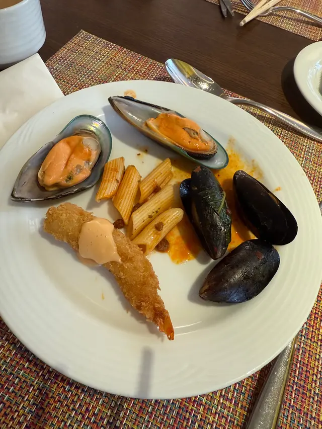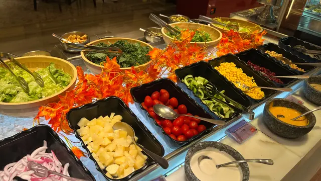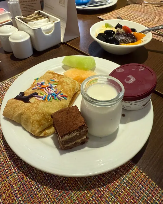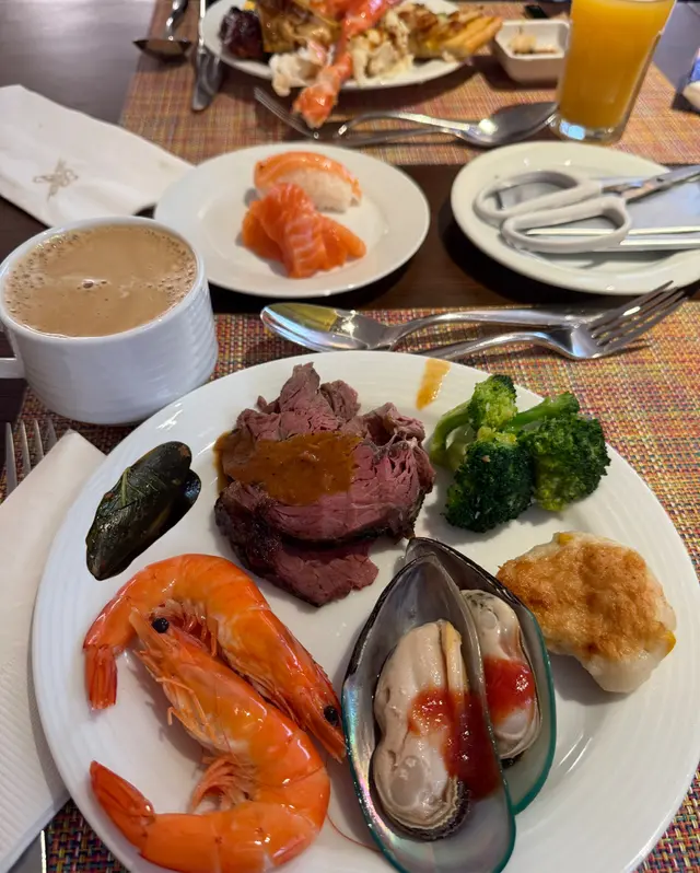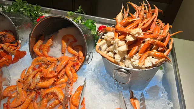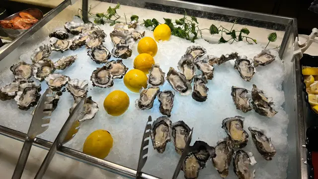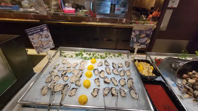 係佐敦站E出口直接搭幾轉扶手電梯就能到達位於商場內的酒店一進酒店的lobby雖然不大裝潢走務實而非grand路線但反而有種傳統香港酒店的親切氛圍進場後可見到取餐區不算太大品項亦不算多不過主打生蠔任食,當日提供日本及紐西蘭生蠔味道清甜不會太濃,沒有太重的海水及臭腥味相對其他有提供生蠔的自助餐來說品質不錯另外還有即燒A5牛,熟食方面各國餐品如咖哩,意粉,煮菜類甚至連酸菜魚亦有提供但整體來說味道普通水平餐廳這期正在做每人一客「蒜蓉粉絲蒸龍蝦尾」菜式,賣相上雖然不錯但可惜當日調味實在太鹹粉絲根本重鹽到無法入口的程度實在可惜來到甜品部分各種蛋糕甜品類齊全,8月開始就有的榴蓮系列還在繼續鮮果班戟、榴槤忌廉蛋糕,榴槤泡芙、榴槤布甸、榴槤海綿蛋糕及榴槤吉士撻,愛榴人士相信很滿足當然雪糕系列Häagen-Dazs及MÖVENPICK也提供任食總結:雖然菜式種類及味道普通,但主打走一個生蠔任食用餐環境氛圍相當不錯,安靜舒適用餐時間3小時也適合與家人朋友們慢吃慢聊聯絡感情。…查看更多