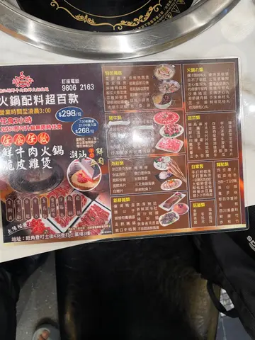 可以令到我一个星期食两次,真系吸引嘅👍🏼无限时任食任饮之外,牛肉款式多而且新鲜(再落单都同样质素),海鲜盘嘅海鲜唔系冰鲜嘢,任饮汽水啤酒款式多(有黑啤),其他火锅配料食物应有尽有,特长蟹柳、鸡子、猪肚、鱼皮饺、各式肉丸等等,好快会去第三次。…查看更多