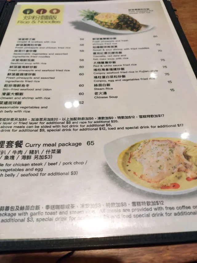 呢間冰室係我爺爺既飯堂,今次過去搵佢,佢帶左佢黎呢度食,話價錢平又夠大份,員工又熱情。嗯,係既,佢既份量真係好大,叫左一個雞粒菠蘿炒飯,用菠蘿裝住個炒飯,喺茶餐廳來講的而且確係超額完成,因為成日覺得喺茶餐廳唔會有呢一種款式提供,但佢呢度有,真係令人有驚喜。另外,叫咗個班腩豆腐枝竹煲,一樣地份量好足夠,枝竹特別多又入味,真係好高質素,難怪我爺爺不停對佢有讚冇彈。不過兩個人叫兩個餸都真係食唔晒。見到店舖大多數食嘅都係附近嘅街坊,相信呢間店舖係受街坊歡迎嘅😊…查看更多
