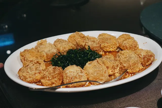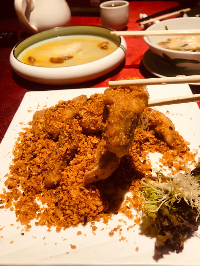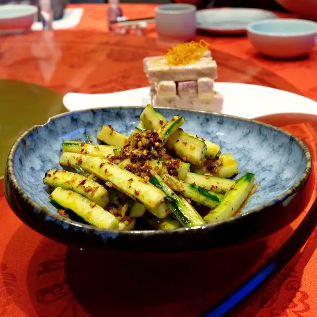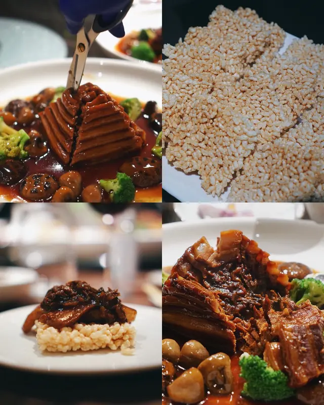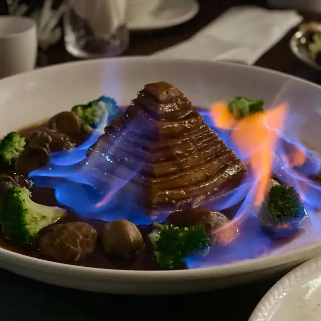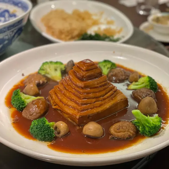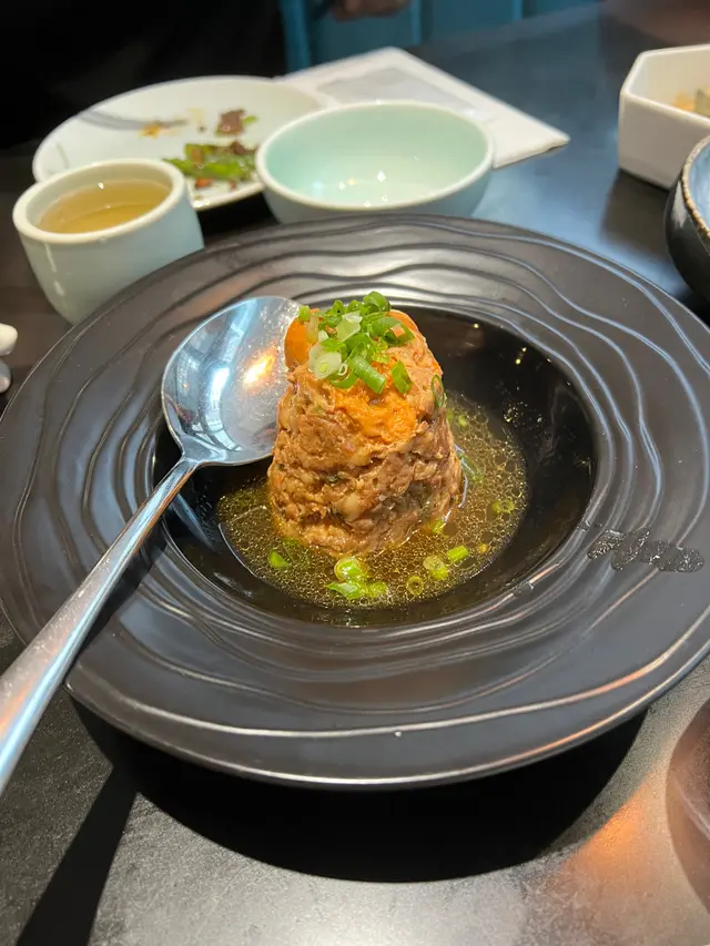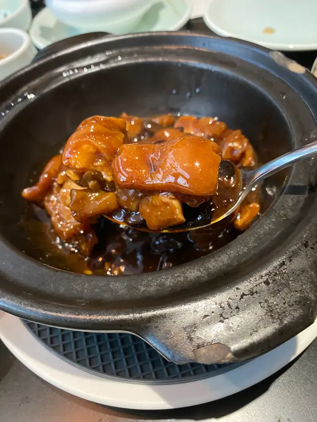 Everything was delicious, appreciate the efforts for these手工菜, ho yau wok hei!My fav was Deep-fried bean curd roll stuffed radish (灌漿蘿蔔), Braised pigeon (紅燒頂鴿), Chiu Chow Fried crab with glutinous rice (潮式糯米炒膏蟹), and “Pagoda” pork belly w/ crispy rice (梅干寶塔肉伴鍋巴)😋But it was pretty full when we having the glutinous rice.Menu: 胡麻紫淮山 Purple yam w/ sesame sauce手拍青瓜免耳菌 Chilled Cucumber in Sichuan Style🤯灌漿蘿蔔 Deep-fried bean curd roll stuffed radish | I’m a big fan of all radish dishes, this was so good! 椒鹽九肚魚 Deep-fried Bombay duck with spicy salt金沙鮮魷 Deep-fried squid w/ salted duck egg yolk杏汁花膠燉白肺湯 Almond w/ fish maw and pig lung soup🤯紅燒頂鴿 Braised pigeon | Freaking juicy and delish, one of my fav in town!🤯梅干寶塔肉 (伴鍋巴) “Pagoda” pork belly (Add crispy rice $) | MUST ADD crispy rice, ultimate pork belly melt in the mouth, It’s so much effort to do this and they nailed it. I can’t resist any relation with pork belly w/ preserved vegetables(梅菜扣肉), this was so yummmm!潮式糯米炒膏蟹 Chiu Chow fried crab with glutinous rice玫瑰豉油雞 Soy sauce chicken | Super tender!黃菊酸菜桂花魚 Poached fish w/ pickled mustard green | yum!水煮新鮮牛頸脊 Sichuan poached beef neck上湯蒜子浸青蔬 Soup with garlic and green vegetables反沙芋Deep-fried taro tossed with sugar福果綠豆爽 Gingko mung bean soup查看更多
