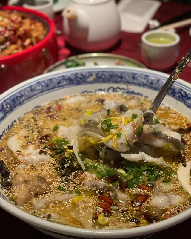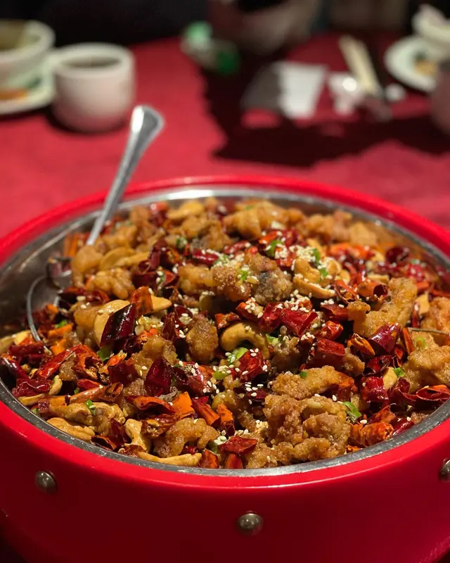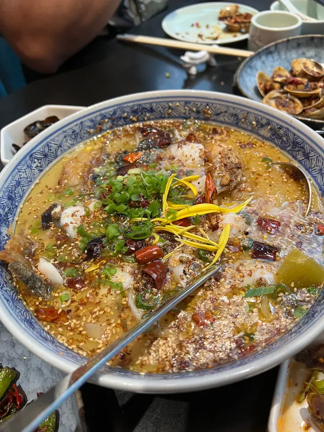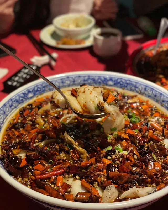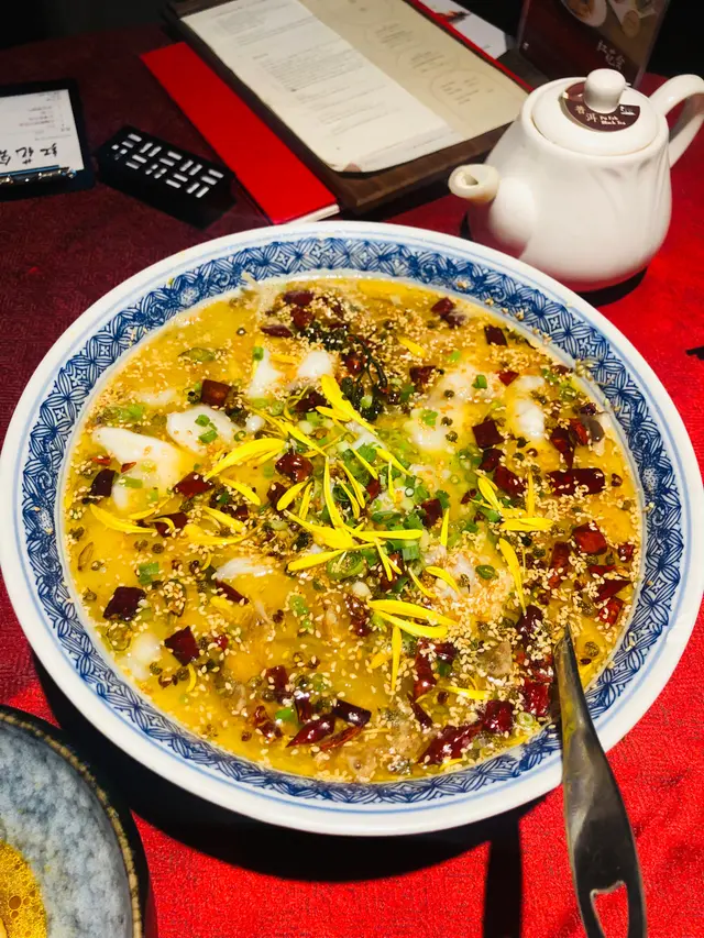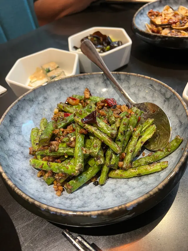今次講一間尋晚試嘅川菜, 價錢係中高價位, 食物質素唔錯(尤其係辣子雞!), 不過我覺得有啲overpriced.1. 尖椒黃金皮蛋 $98蛋黃非常流心, 咬落好爽, 有口感q彈, 唔會軟淋淋, 有啫喱嘅感覺. 醬汁調味唔會太感, 青椒片微辣, 唔難入口. 整體配合得好好👍🏻👍🏻2. 口水雞 $148口水雞份量算多, 可惜肉唔夠滑, 同温度偏熱, 唔算係好出色嘅前菜. 味道幾辣, 唔食得太辣suggest叫少辣3. 臘味炒芥蘭$198有臘肉同臘腸, 炒得好香, 切得薄, 唔會太油膩. 芥蘭爽口唔苦, 整體唔錯4. 辣子雞 $328強烈推薦! 一上菜已經聞到超香辣味, 非常吸引. 其他地方食到嘅辣子雞好多都係辣椒多過雞好多,但呢個好唔同,雞嘅份量超足,完全對得住個價錢。而且炸得非常適中唔會太燶, 保持到雞肉嘅嫩滑. 賣相同味道都可以話係今晚嘅mvp👍🏻👍🏻👍🏻5. 水煮魚片 (海沙巴) $468魚片可以選擇桂魚或沙巴, 我地選左沙巴因為口感比較實淨同大舊, 桂魚會比較薄同滑身, 揀邊樣就各有喜好啦. 魚片好入味, 雖然大舊但都好滑, 配料都好有誠意, 好多薯粉同蓮藕. 味道方面, 可能因為我地叫少辣, 唔算好辣, 但整體都好夠味同有辣香, 要讚嘅位係油量好少, 容易入口. 唯一可惜係魚嘅數量太少, 七個人每人一至兩舊就冇晒6. 酸菜魚 (海沙巴) $468賣相好靚, 魚同樣用左沙巴. 湯底比出面其他餐廳特別, 佢唔算好濃, 但有陣陣甜味, 撈飯一流, 我自己幾中意. 咸酸菜唔太酸, 一樣係甜甜地, 爽口嘅. 配料同樣有蓮藕同薯粉, 係一味幾有特色嘅酸菜魚. 7. 百味醬蒸豚肉腩片$168好似熱食版嘅蒜泥白肉, 醬汁香濃. 腩肉切得好薄, 包埋底下嘅金菇食, 唔覺肥膩. 作為一道唔辣嘅菜係幾好嘅緩衝8. 銀牙肉絲煎黃金脆面 $148即係肉絲炒麵, 但炒得好食. 用左幼面, 炒得好脆身. 9. 熗炒包菜 $128這個就比較失望了, 包菜靚但唔夠味, 辣味不足. 有啲失色.10. 甜品 - 反沙芋Off menu潮州甜品, 有驚喜. 將芋頭先炸到脆身再加上面層嘅糖霜, 味道唔複雜但好好為這餐川菜作結.👍🏻雖然價錢唔平, 不過為左個辣子雞都有機會再黎😬推介菜: 辣子雞, 尖椒黃金皮蛋, 反沙芋查看更多