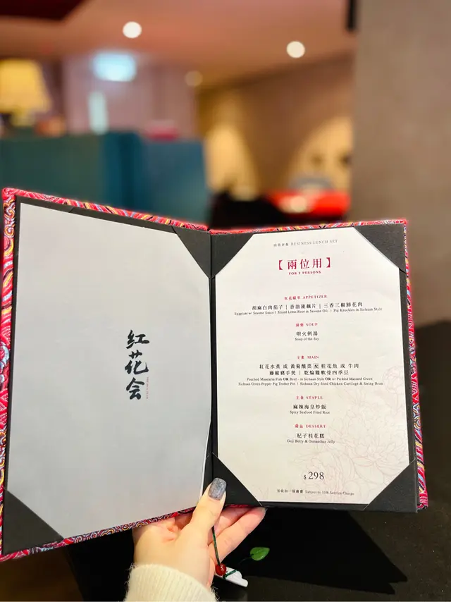 Worth Trying Business Lunch Set🥢..灣仔有一間古色中菜廳🥢 主打川菜,提供多種香辣菜式,仲設有素菜餐牌。滿古典既紅花會,趁下午有時間跟朋友來一試佢lunch 既商務套餐 $298,精緻菜式 味道不錯 抵食之選。先來餐前小食:紅花獻萃胡椒白肉茄子 (腍滑惹味)、香油蓮藕片 (爽脆麻香)、三香三椒蹄花肉 (Q彈有咬口),前菜都一點不馬虎呢。再來既湯羹:明火例湯 l[霸王花甘筍]l🍲 湯品足料濃郁,喝下感覺好滋補呢。來到豐富主菜,款款精緻小巧有鑊氣川菜當然不少得魚🐟 l[黃菊酸菜配桂花魚]l,份量十足魚肉嫩滑可自行選擇辣度,鮮味度再提升一定更吸引。配料亦非常多,當中最愛既晶瑩剔透薯粉夠煙韌,Q彈十足有咬口。🐽l[藤椒豬手煲]l,炆得軟淋入味,外皮有彈性落足心思。🐥 l[乾煸雞軟骨四季豆]l 亦功駕十足夠鑊氣,雞軟骨炸得香脆不油膩,而四季豆乾煸後再炒,惹味非常配搭亦夠創意。來到主食部分:l[麻辣海皇炒飯]l欣賞佢既炒飯底🍚 同樣鑊氣十足,加上蛋香💛 濃郁粒粒分明,面層舖上海鮮勻打茨汁,令味道融和,層次口感double up。最後既甜品:l[杞子桂花糕]l,同樣落足心思又足料,桂花味道香濃配上明目杞子,吃一口感覺熱氣全消又解辣呢。呢個午市商務套餐🥢 十分划算又有質素,值得一試。..×××[紅花會 -The Hua Club]××ש灣仔謝斐道303號凱聯2樓..查看更多
