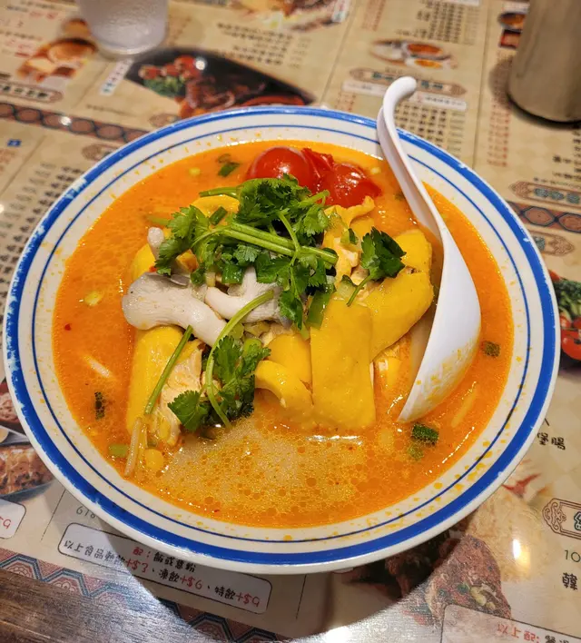 呢間無論早、午、晚餐都見到有人排隊, 但係一直覺得都係一間普通嘅連鎖茶餐廳啫,有冇咁勁😂 好啦最後都係忍唔住去試下嗌咗一個冬陰功海南雞,價錢應該係大概60蚊賣相比預期中靚,紅橙黃綠顏色都齊曬,即刻忍唔住影張相打個卡😂😂湯底都有酸辣味,個人覺得都唔比泰式餐廳差份量適中啦其實我覺得最吸引我嘅地方係個餐牌😂 真係嘅咁多選擇,我都係揀咗好耐之間到呢樣, 如果唔知食咩嘅話嚟呢度都幾好, 實有一樣啱你服務呢日正正常常好似一般茶餐廳咁啦, 冇啲負評講得咁差嘅查看更多